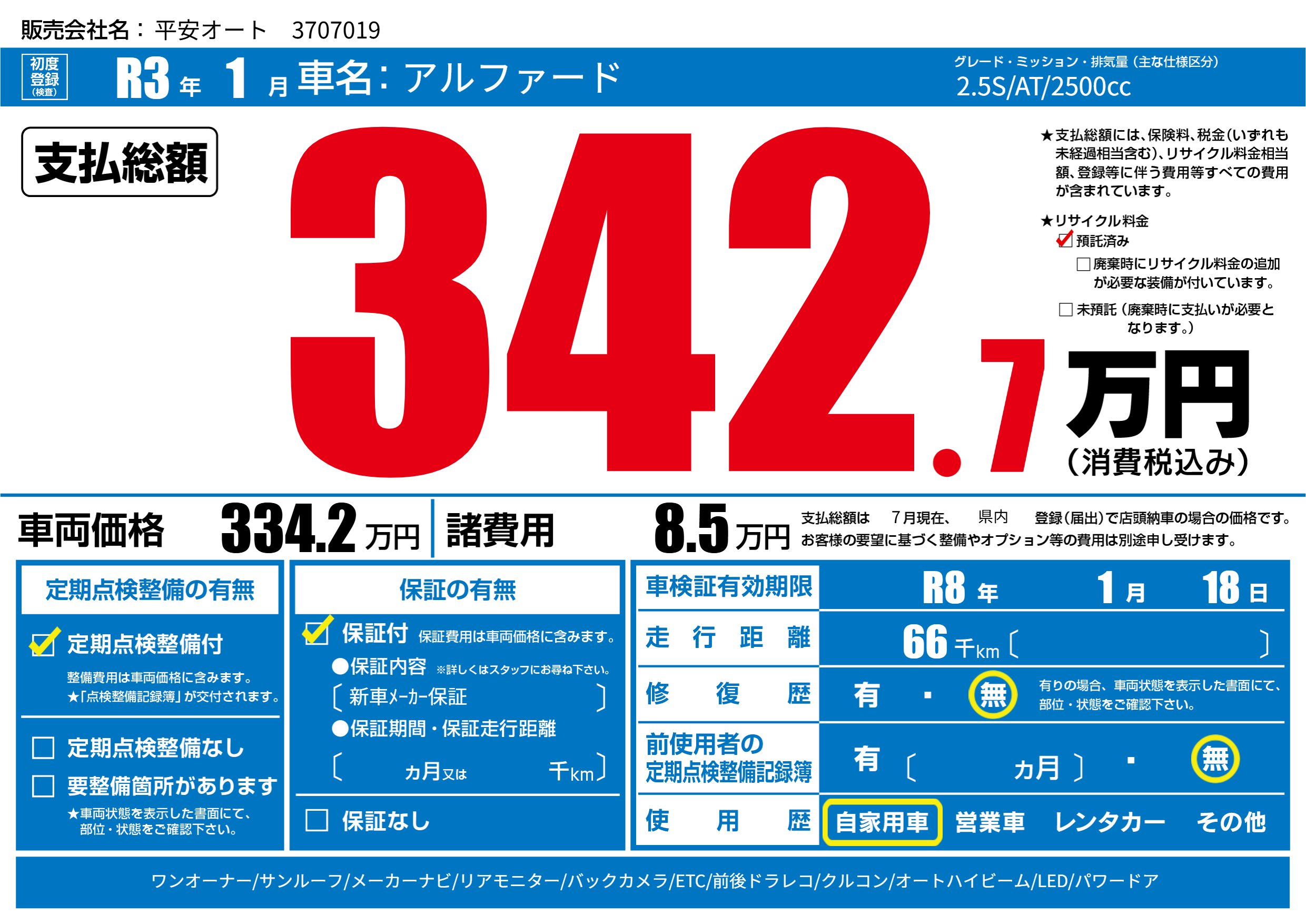 | 走行キロ | 6.6万km | 初年度登録 | R3年1月 |