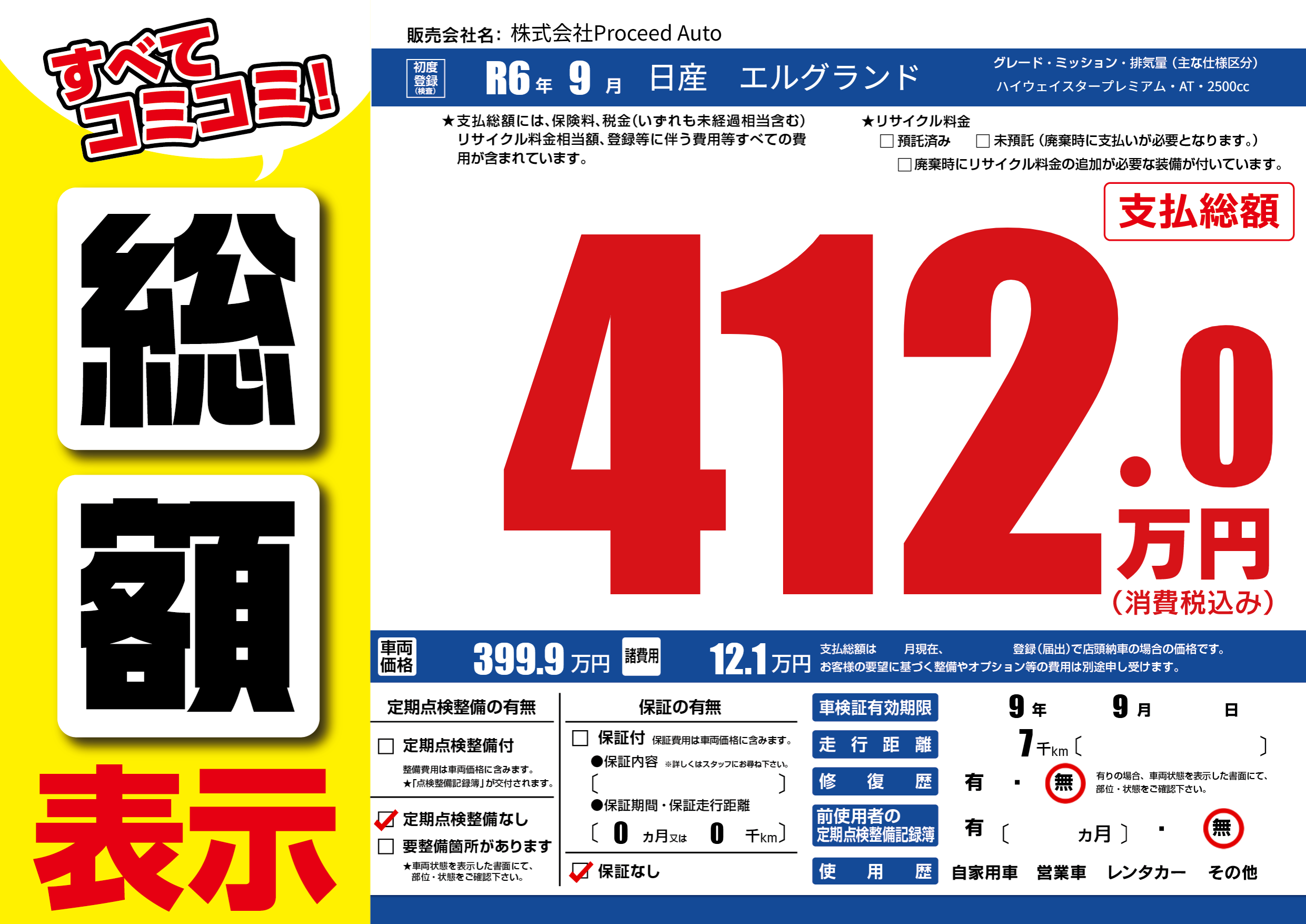 | 定期点検整備 | 定期点検整備なし | ||
