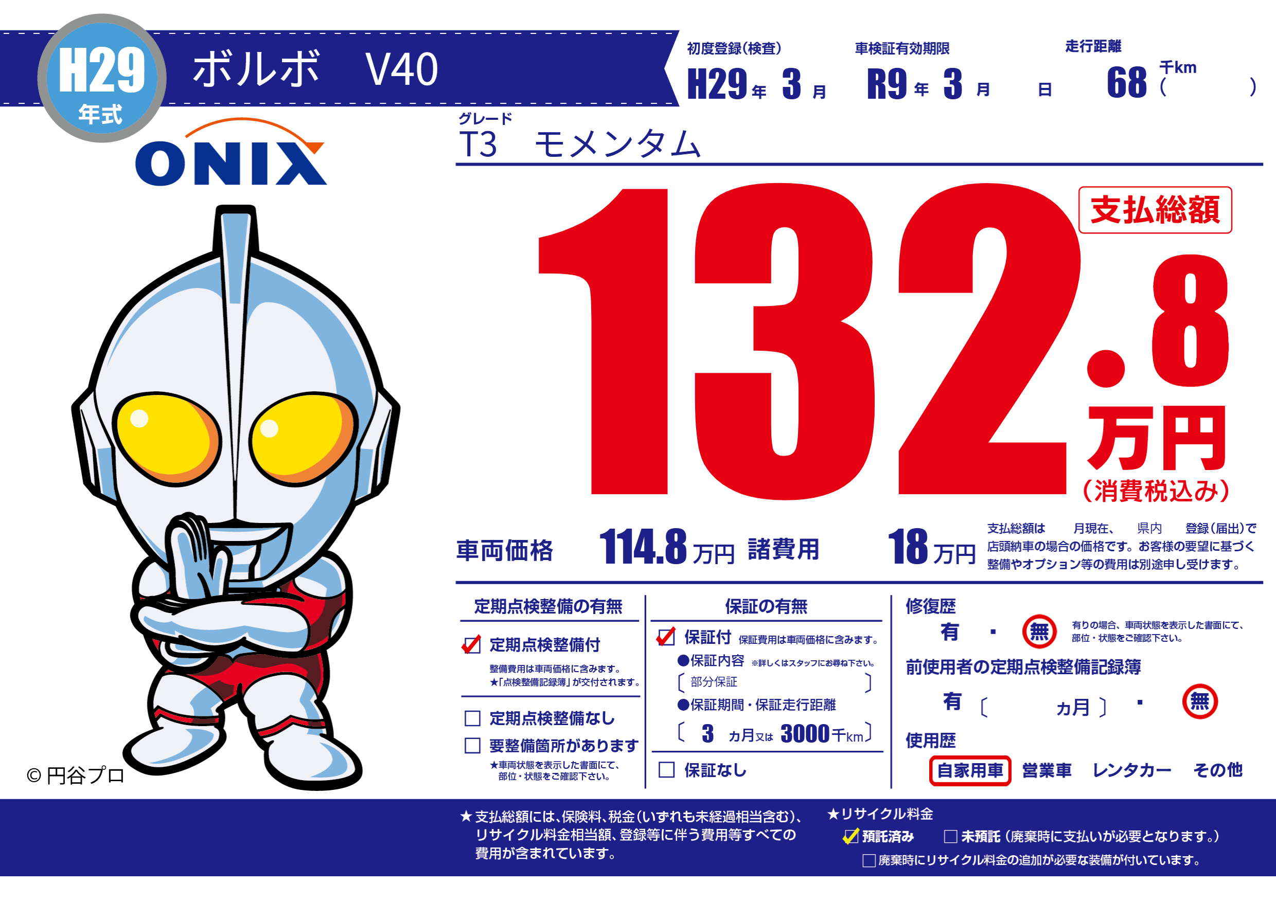 | 車名 | ボルボ V40 | グレード ミッション 排気量 |