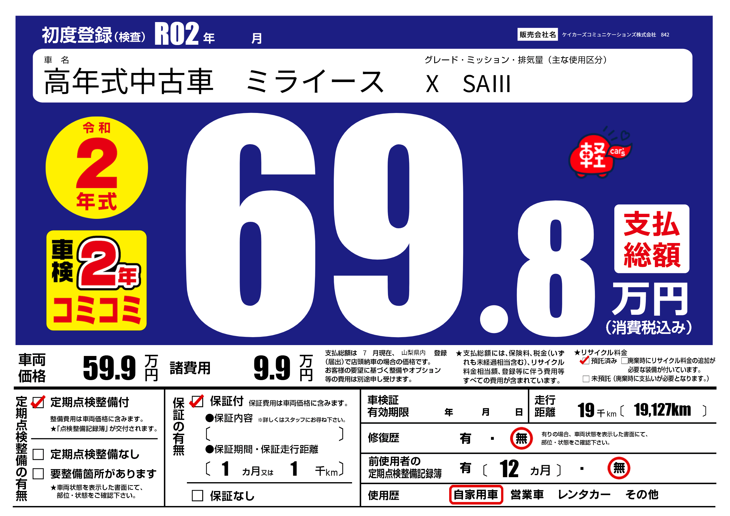 | 定期点検整備 | 定期点検整備あり | ||