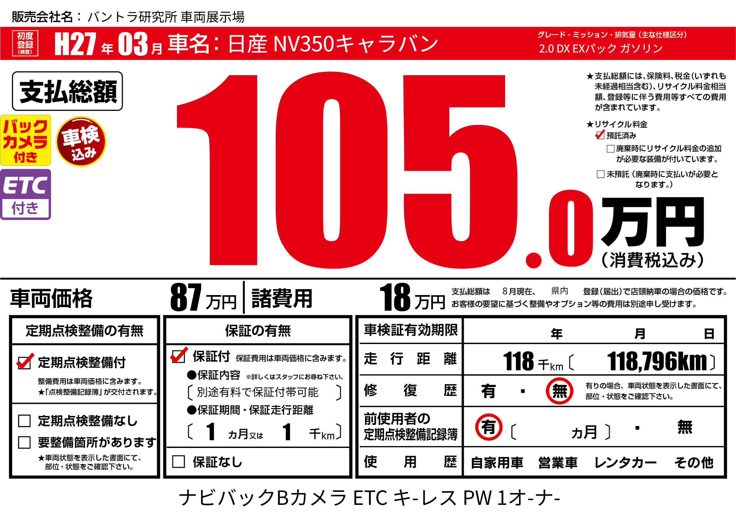 | 定期点検整備 | 定期点検整備あり | ||