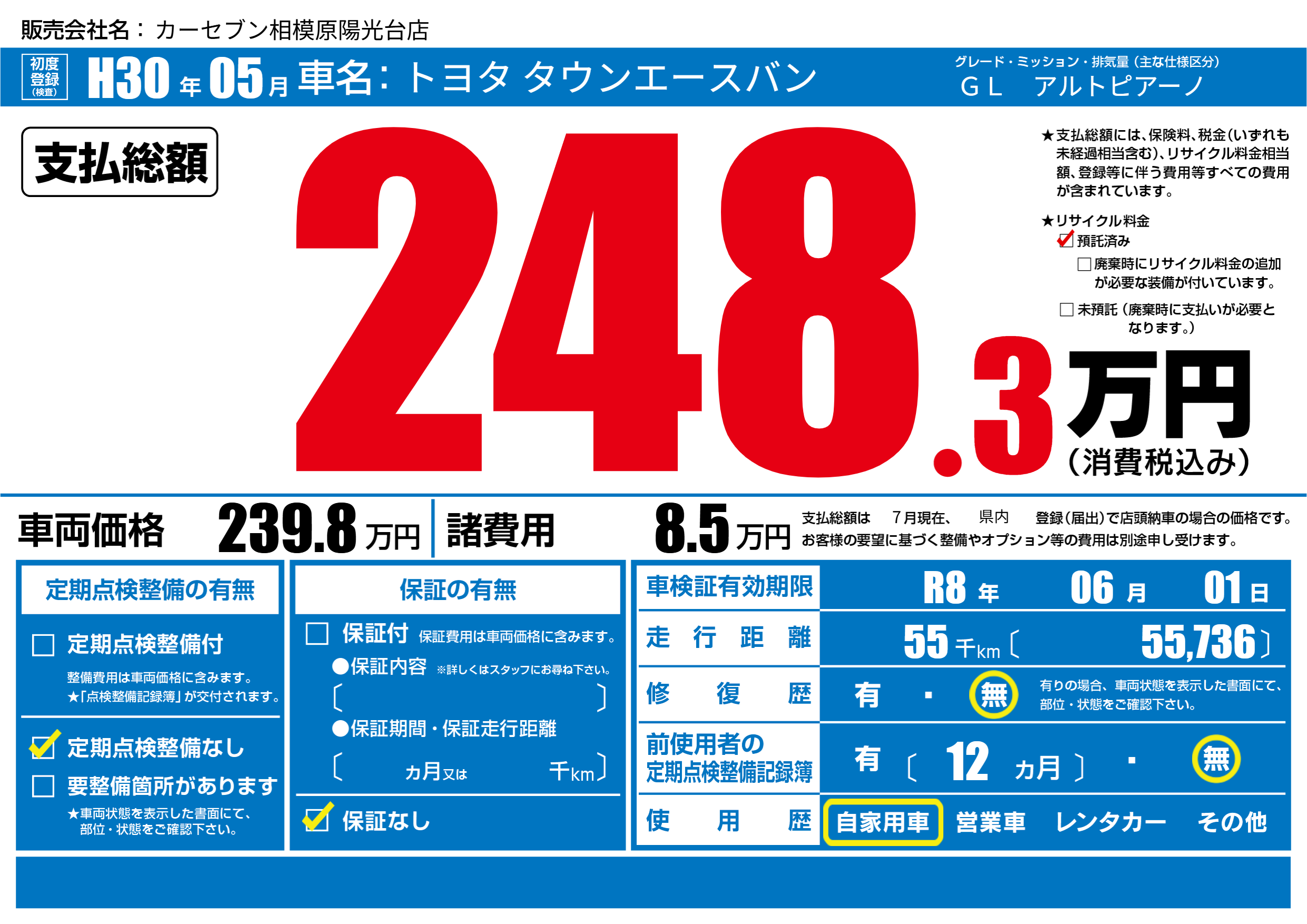 | 車検制限 | R8年 06月 01日 | ||