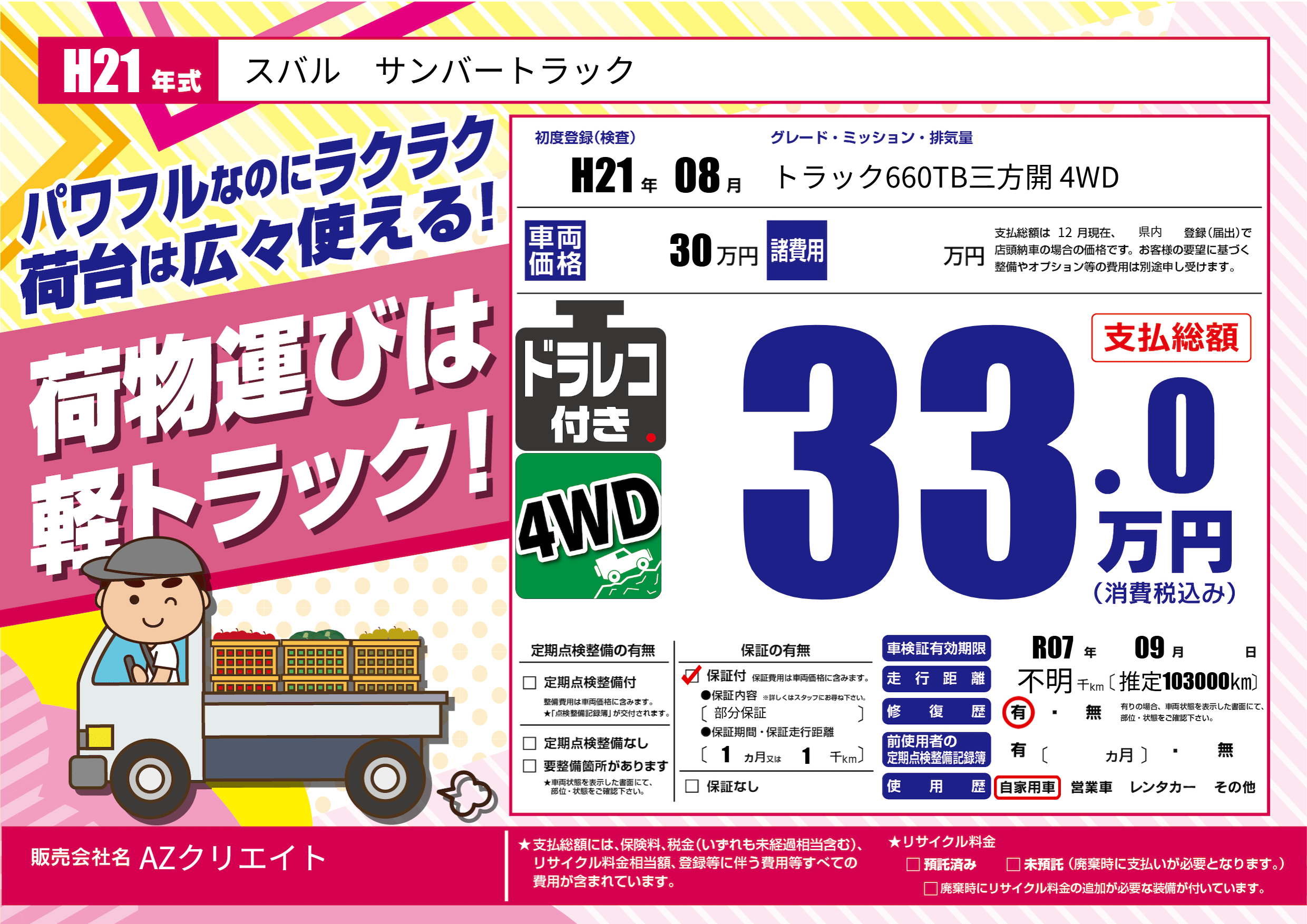 | 車検制限 | R07年 09月 - 日 | ||