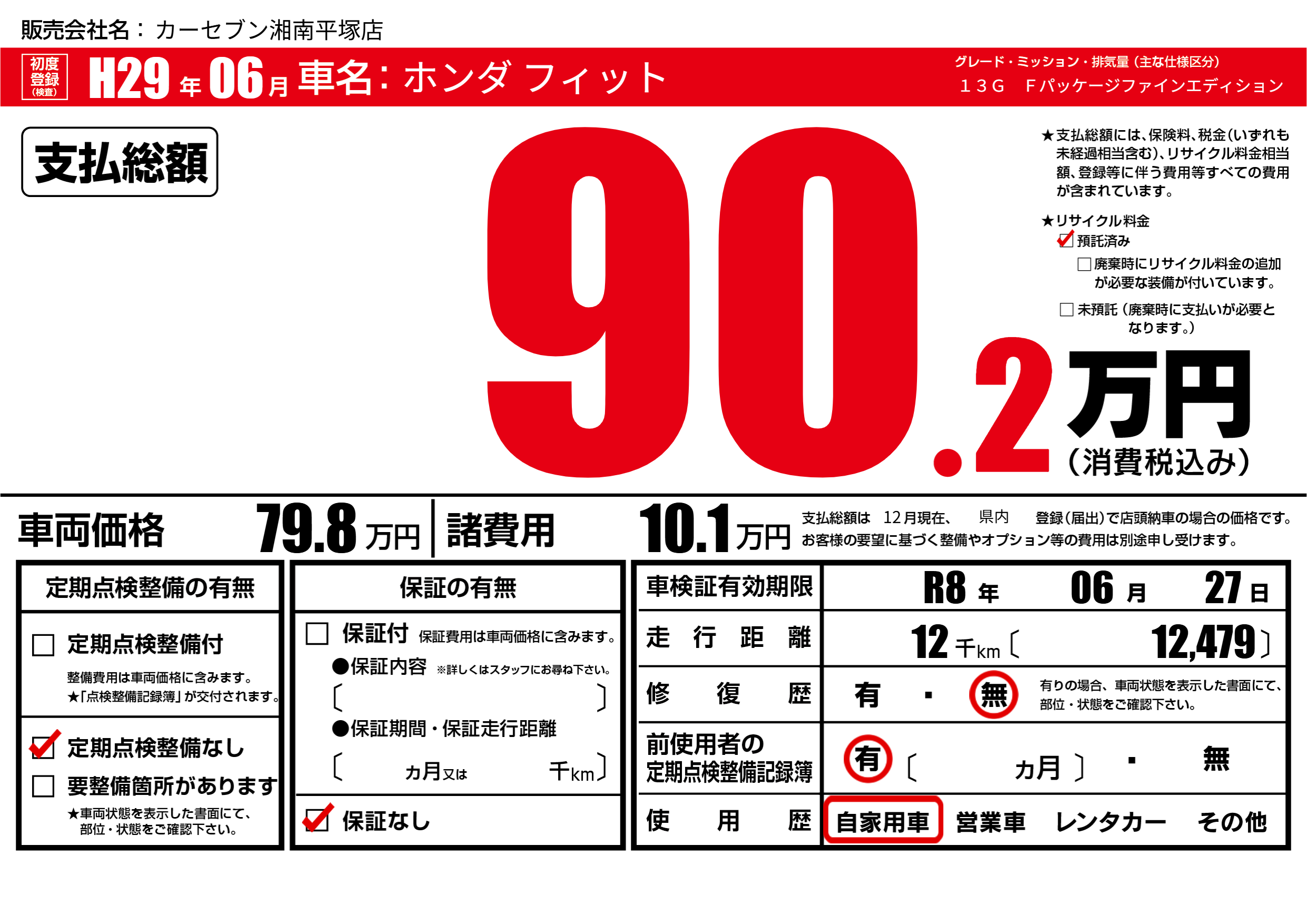 | 走行キロ | 1.2万km | 初年度登録 | H29年06月 |