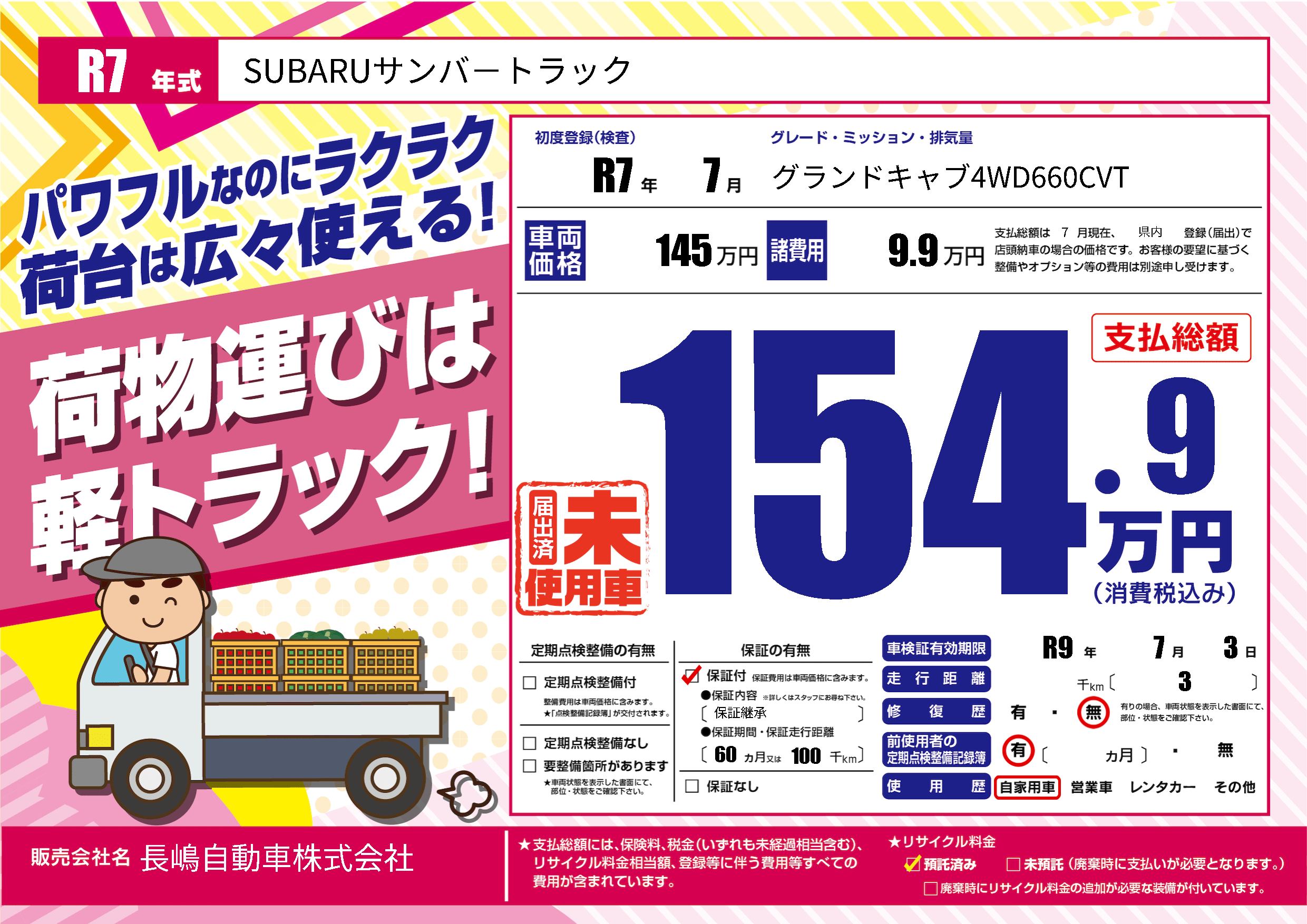 | 走行キロ | - | 初年度登録 | R7年7月 |