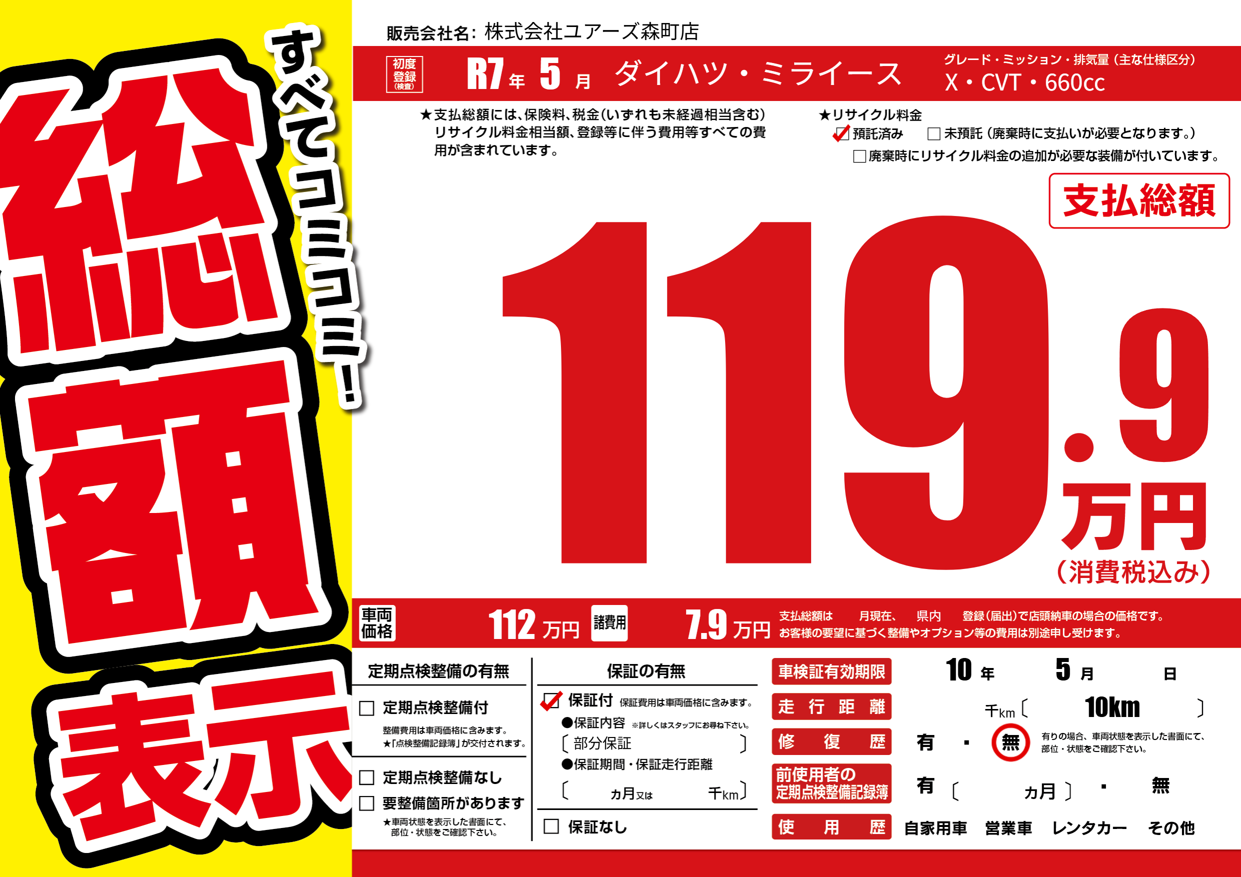 | 走行キロ | - | 初年度登録 | R7年5月 |
