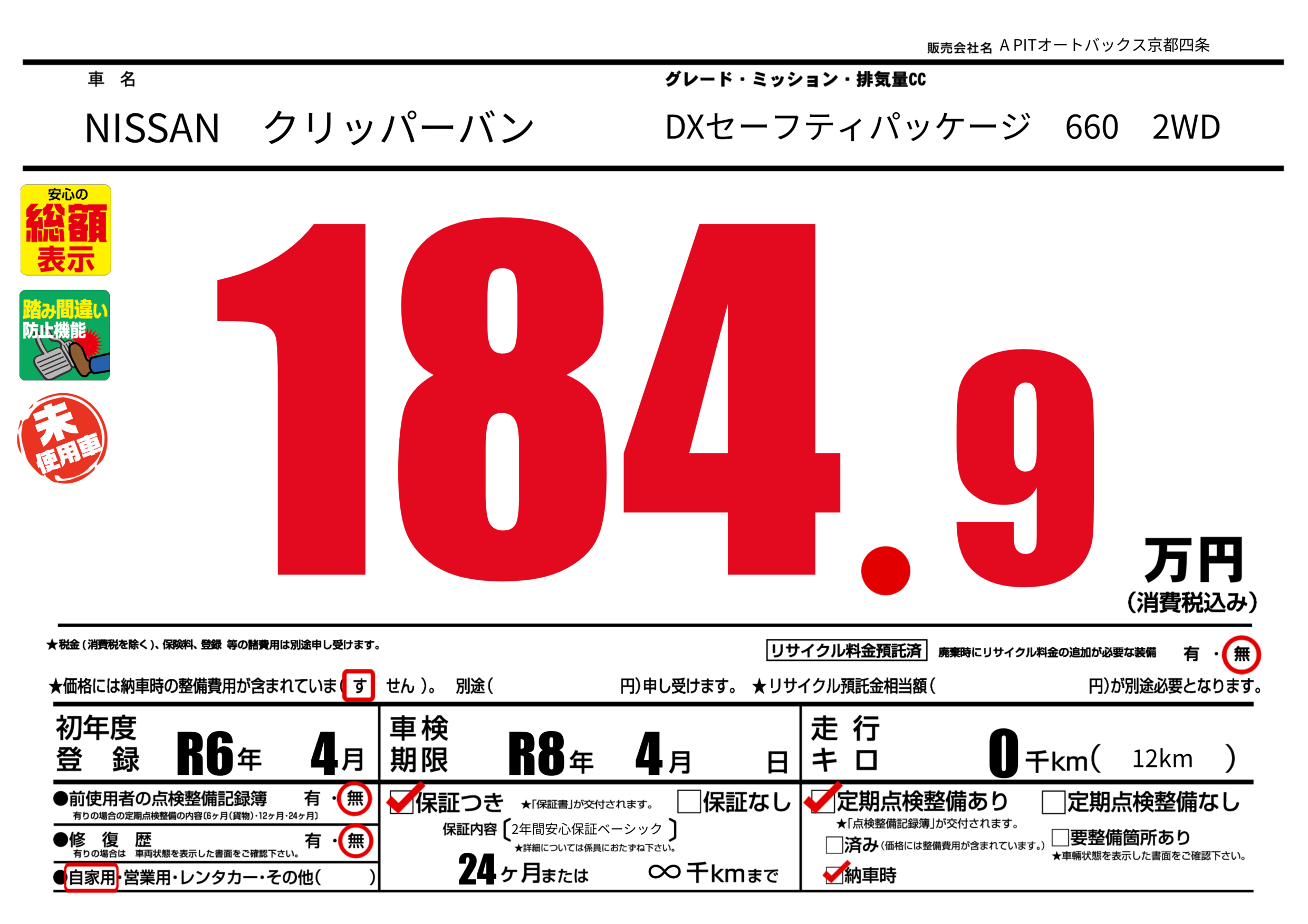 | 車検制限 | R8年 4月 - 日 | ||