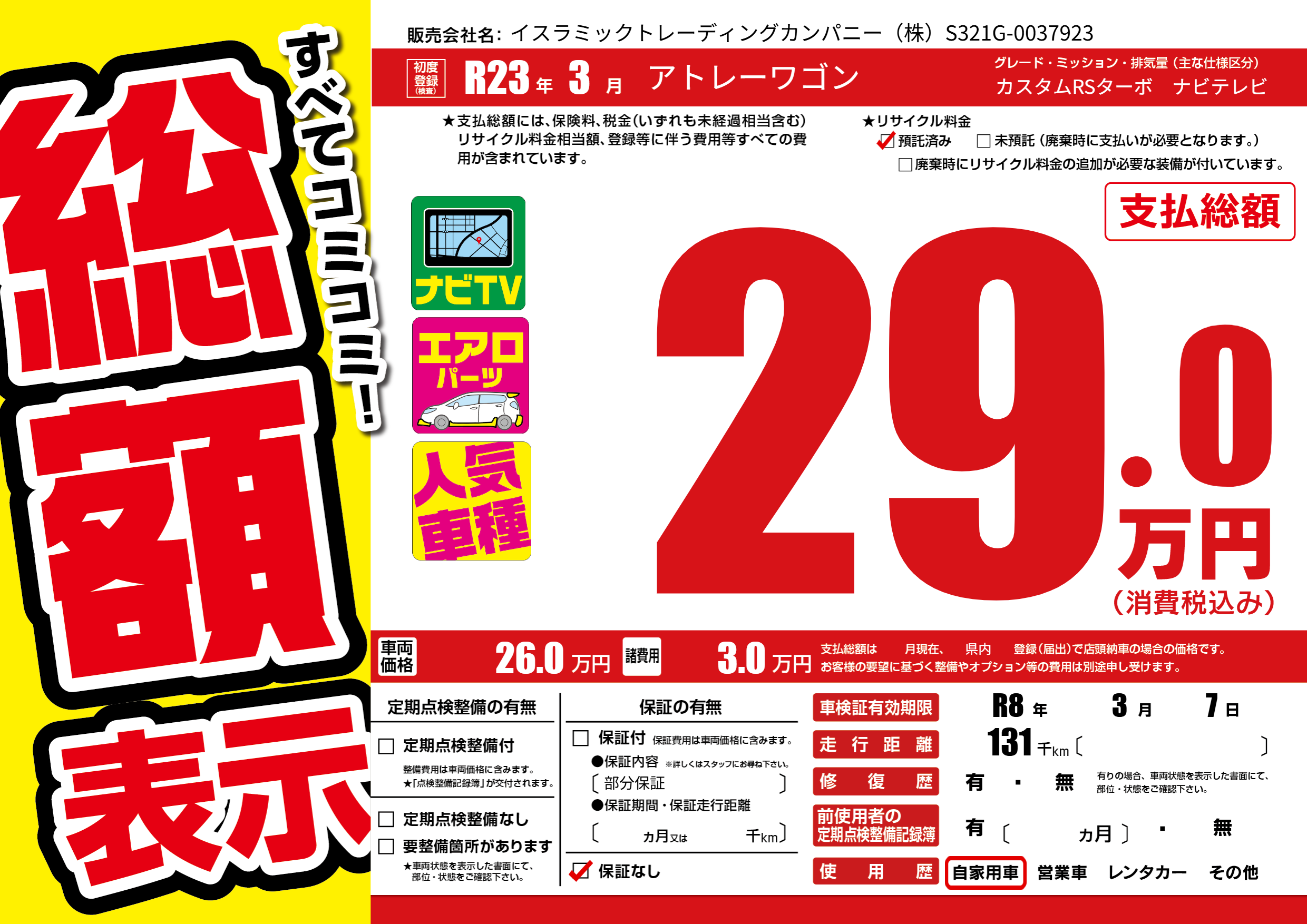 なし | 車検制限 | R8年3月7月 |
