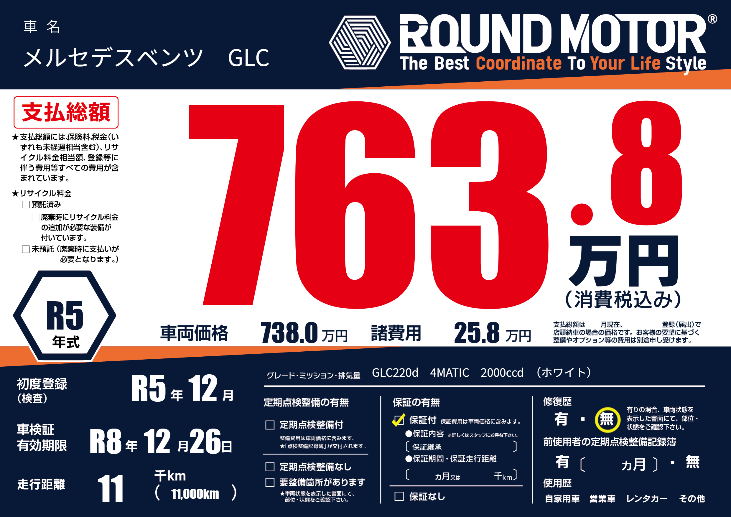 保証付き 保証内容(保証継承) ---ヶ月または()千kmまで |