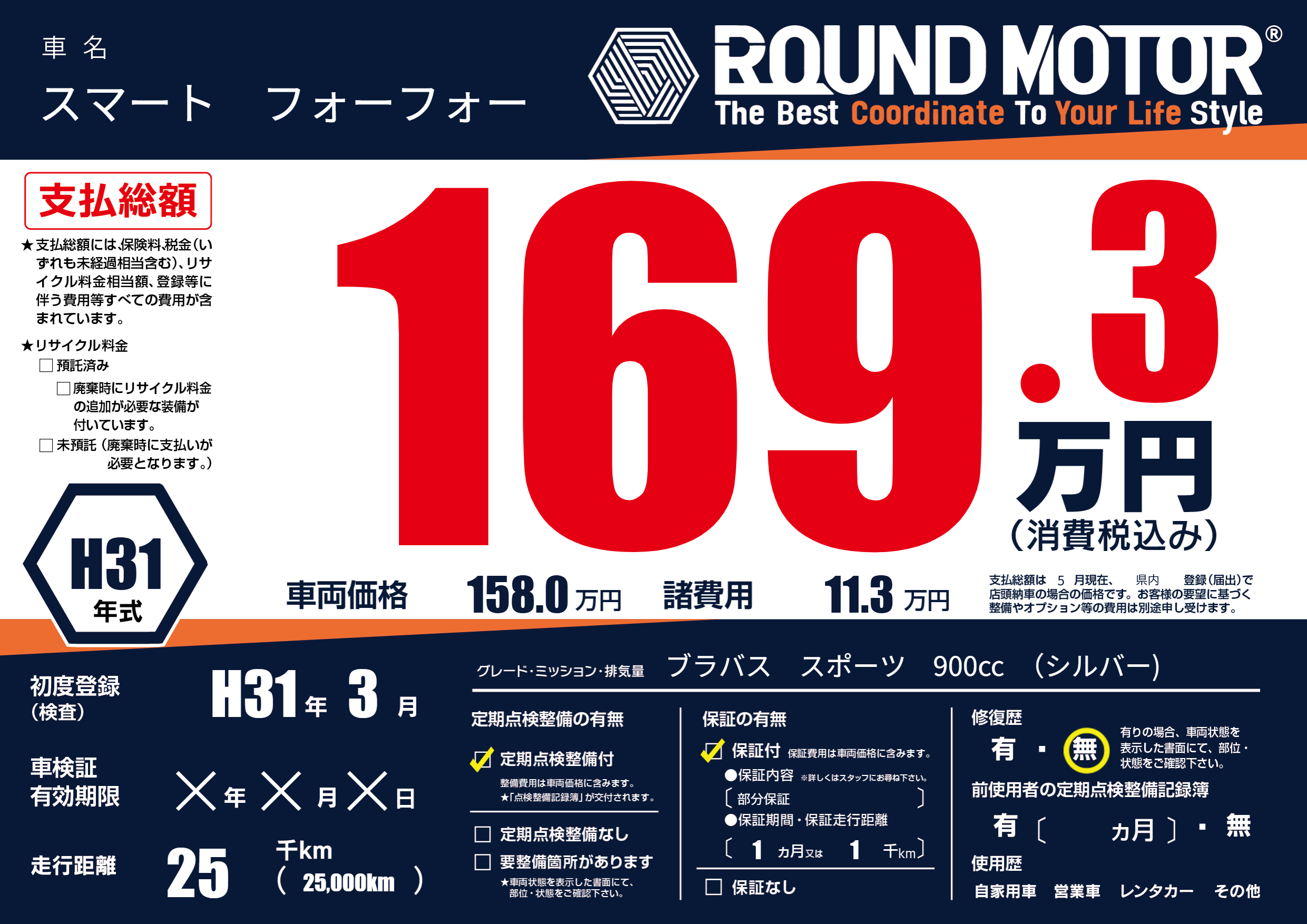 | 車名 | スマート フォーフォー | グレード ミッション 排気量 |