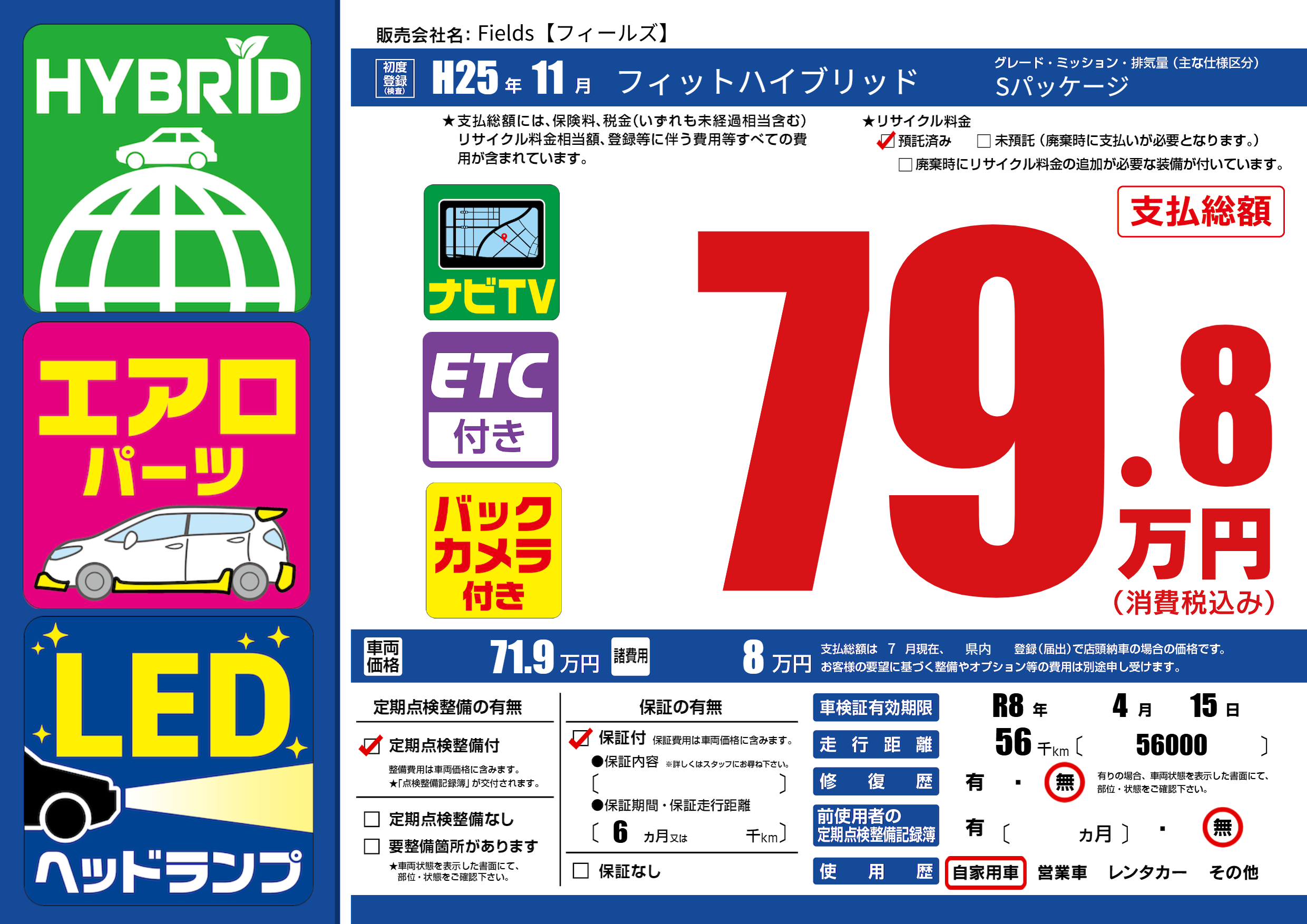 | 走行キロ | 5.6万km | 初年度登録 | H25年11月 |