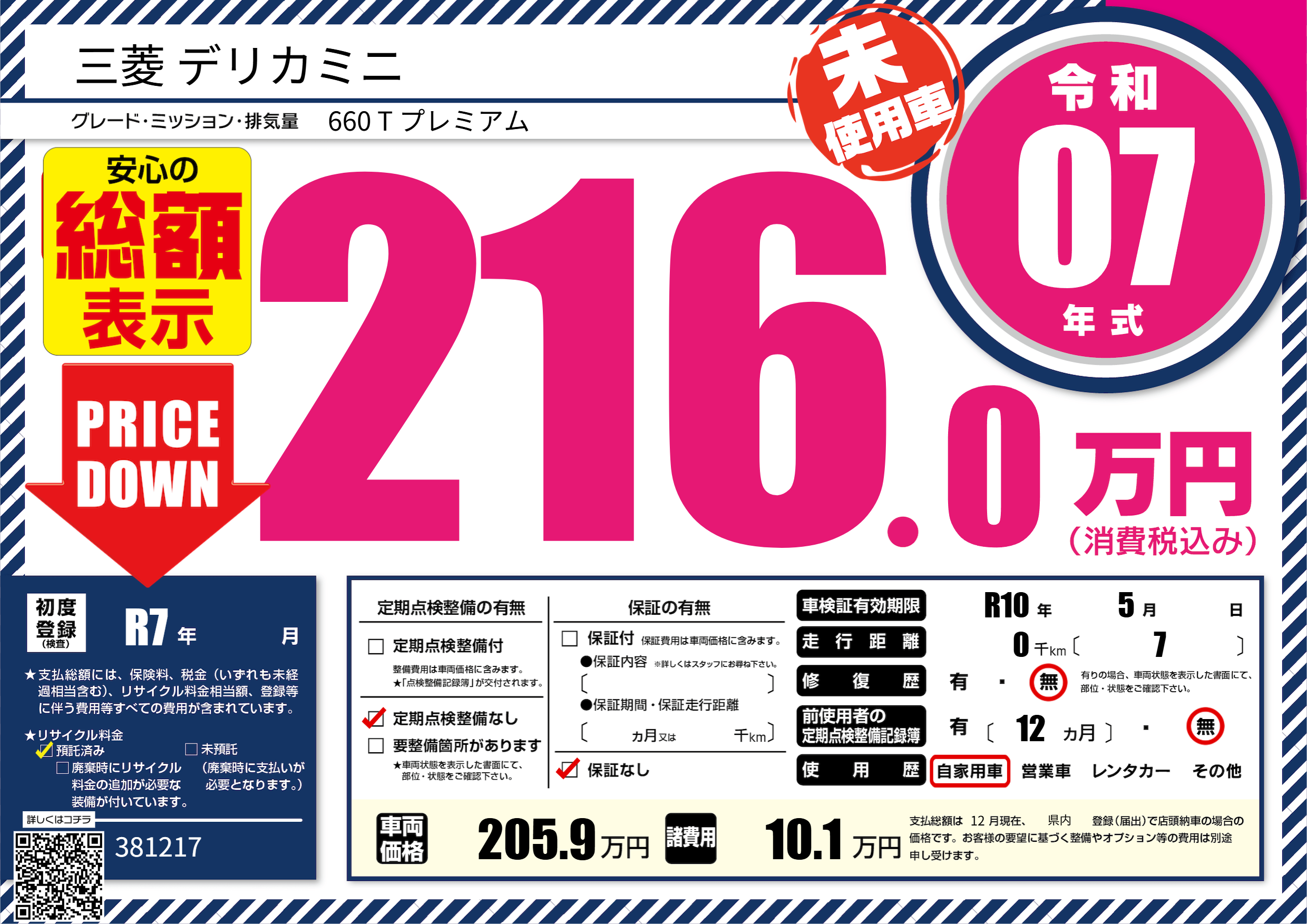 | 車名 | 三菱 デリカミニ | グレード ミッション 排気量 |