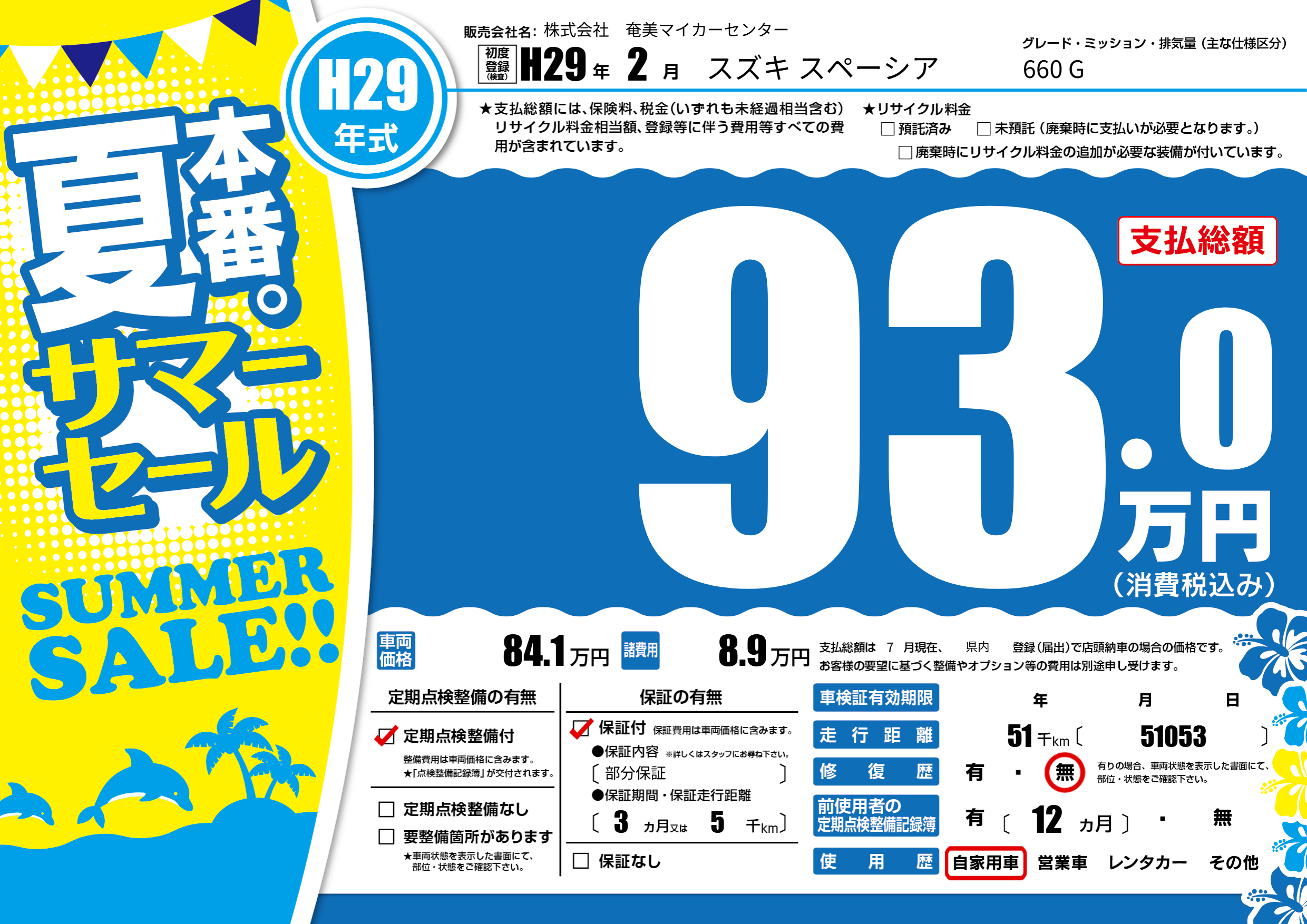 | 走行キロ | 5.1万km | 初年度登録 | H29年2月 |