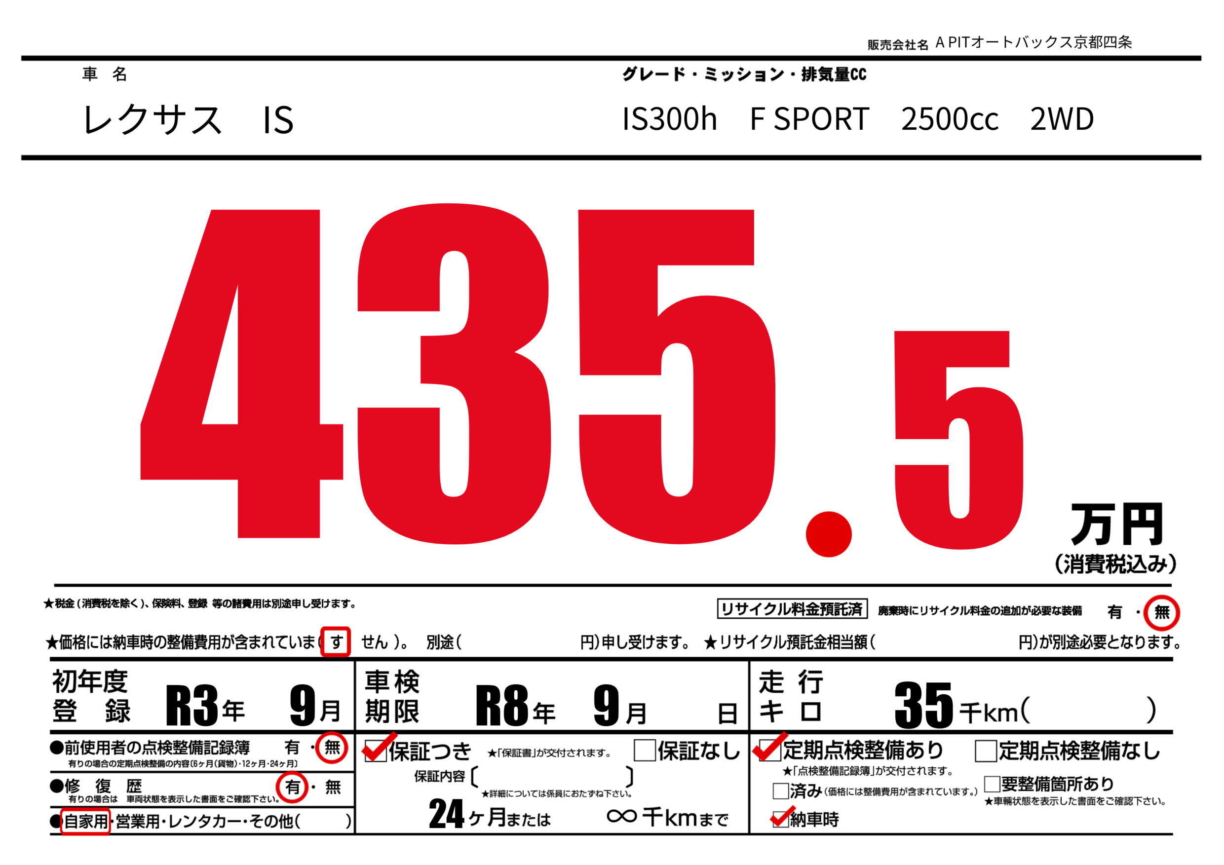 あり | 車検制限 | R8年9月---月 |