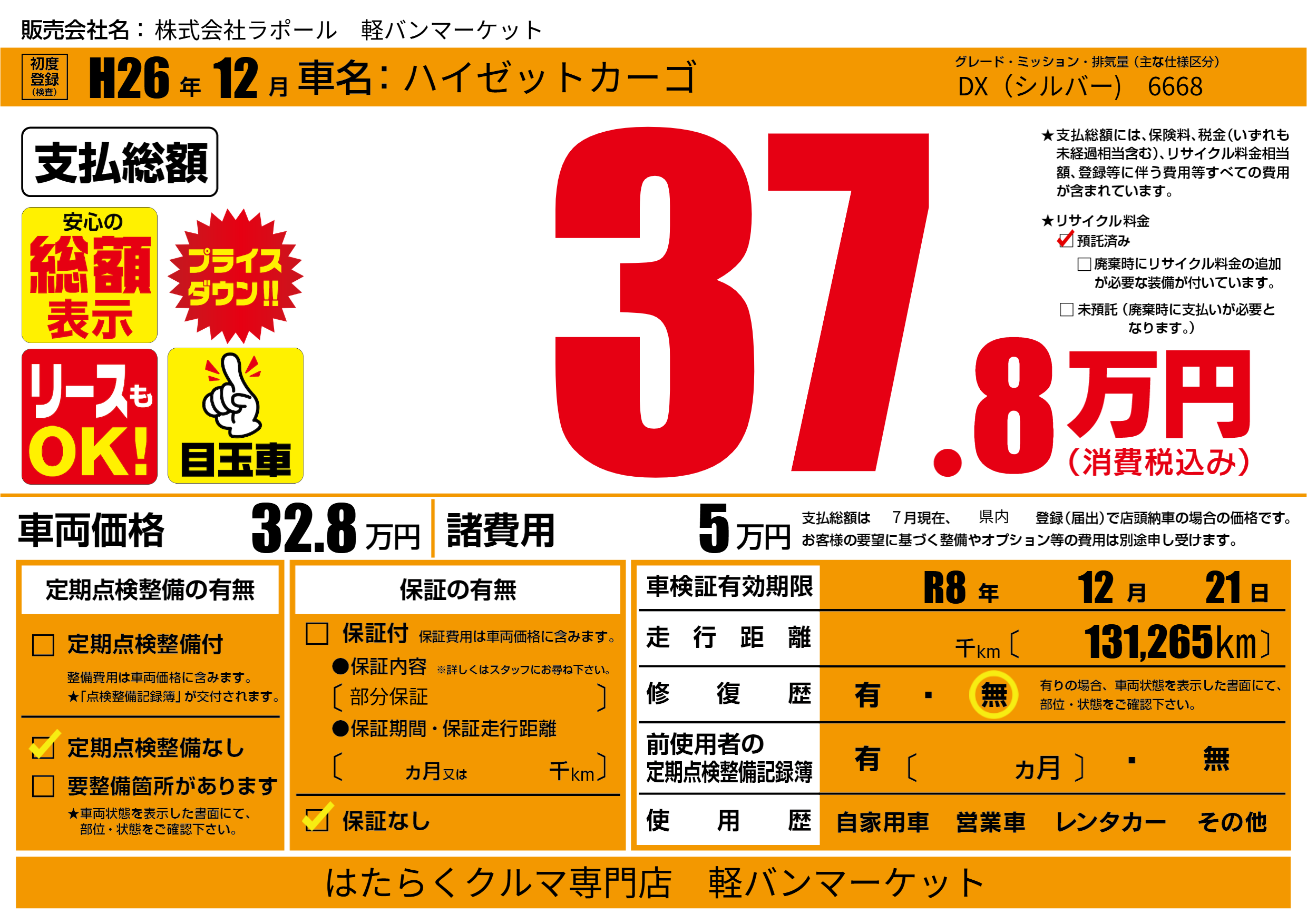 なし | 車検制限 | R8年12月21月 |