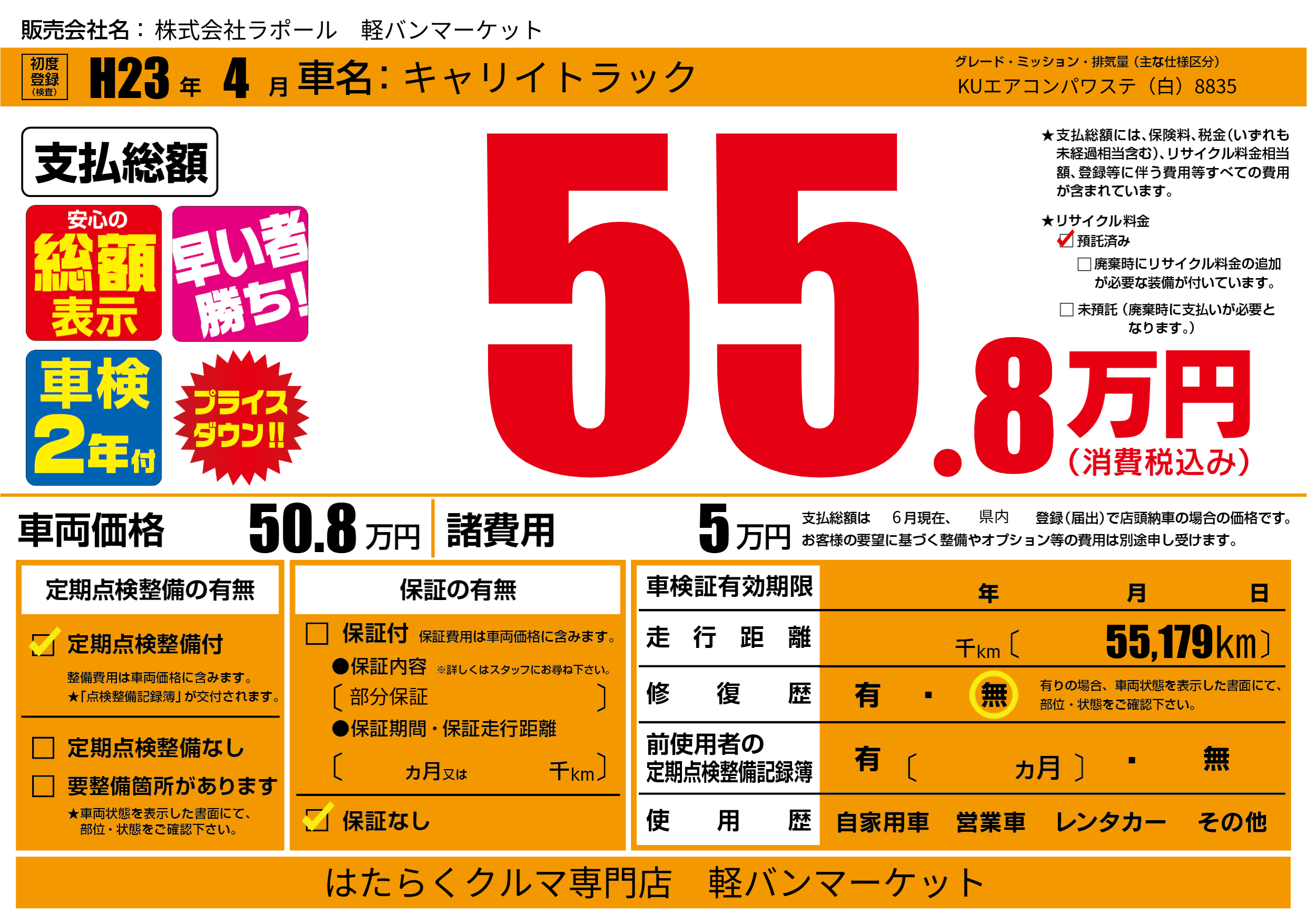 | 走行キロ | - | 初年度登録 | H23年4月 |