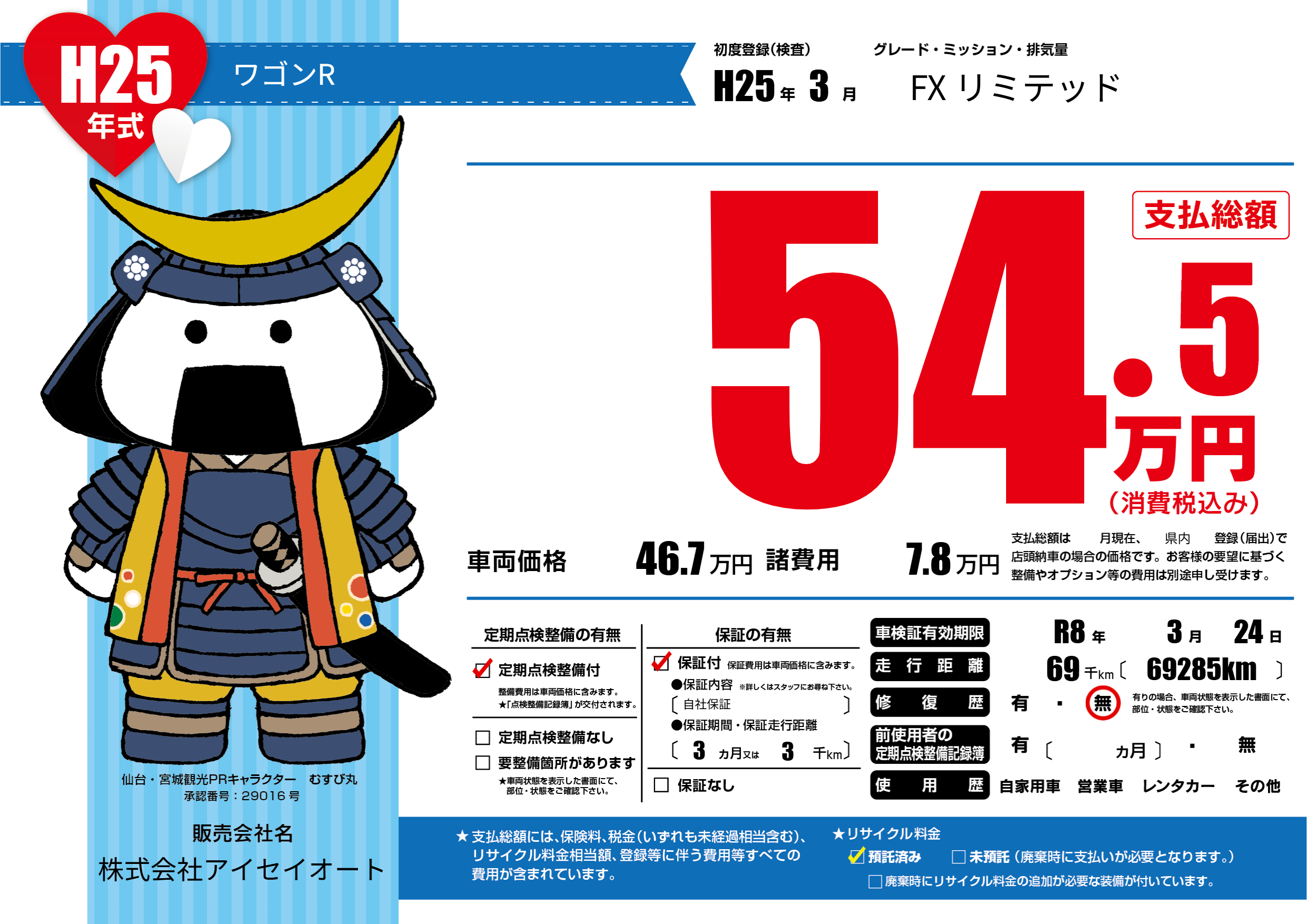 | 車検制限 | R8年 3月 24日 | ||