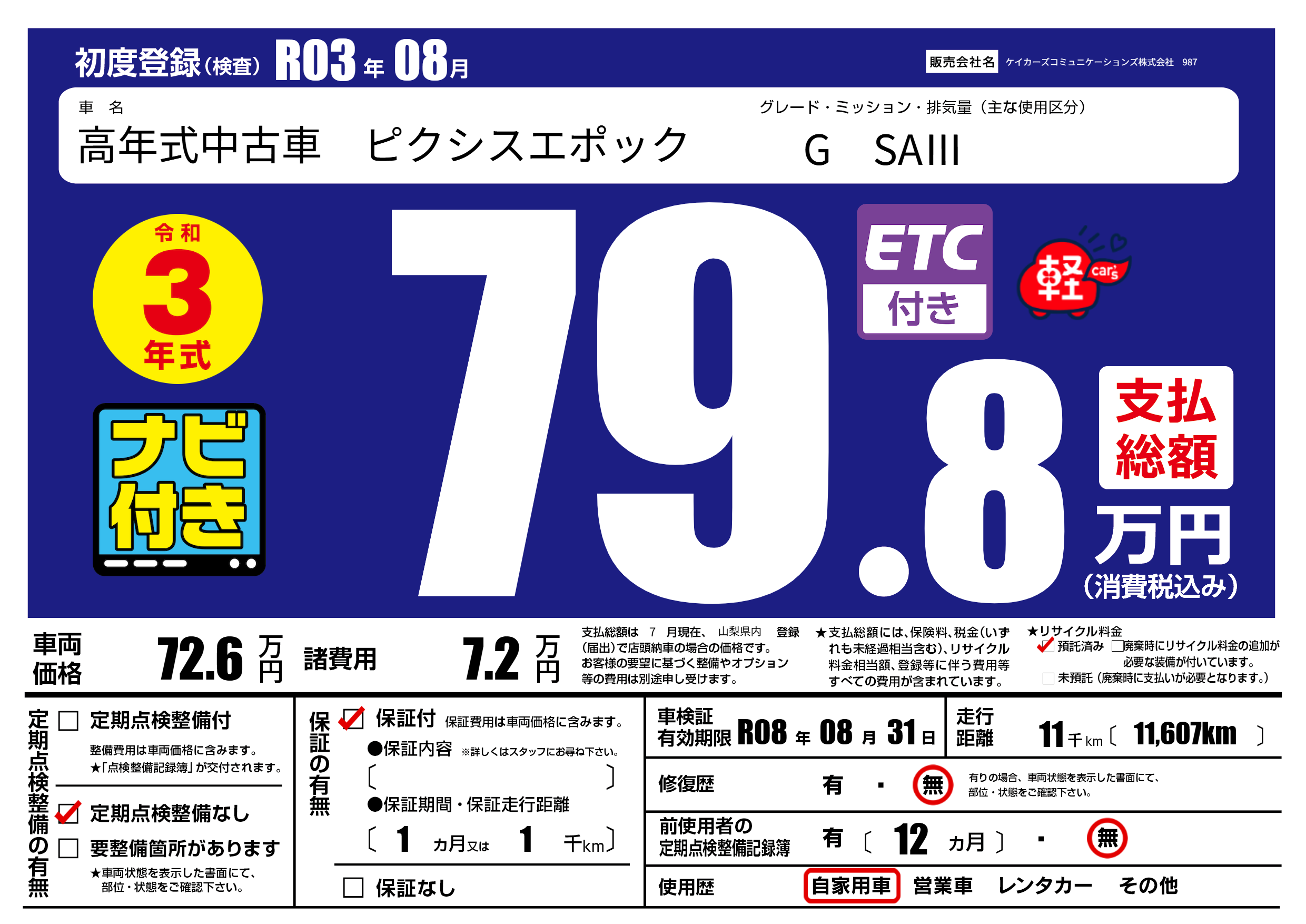 | 初年度登録 | R03年08月 | ||