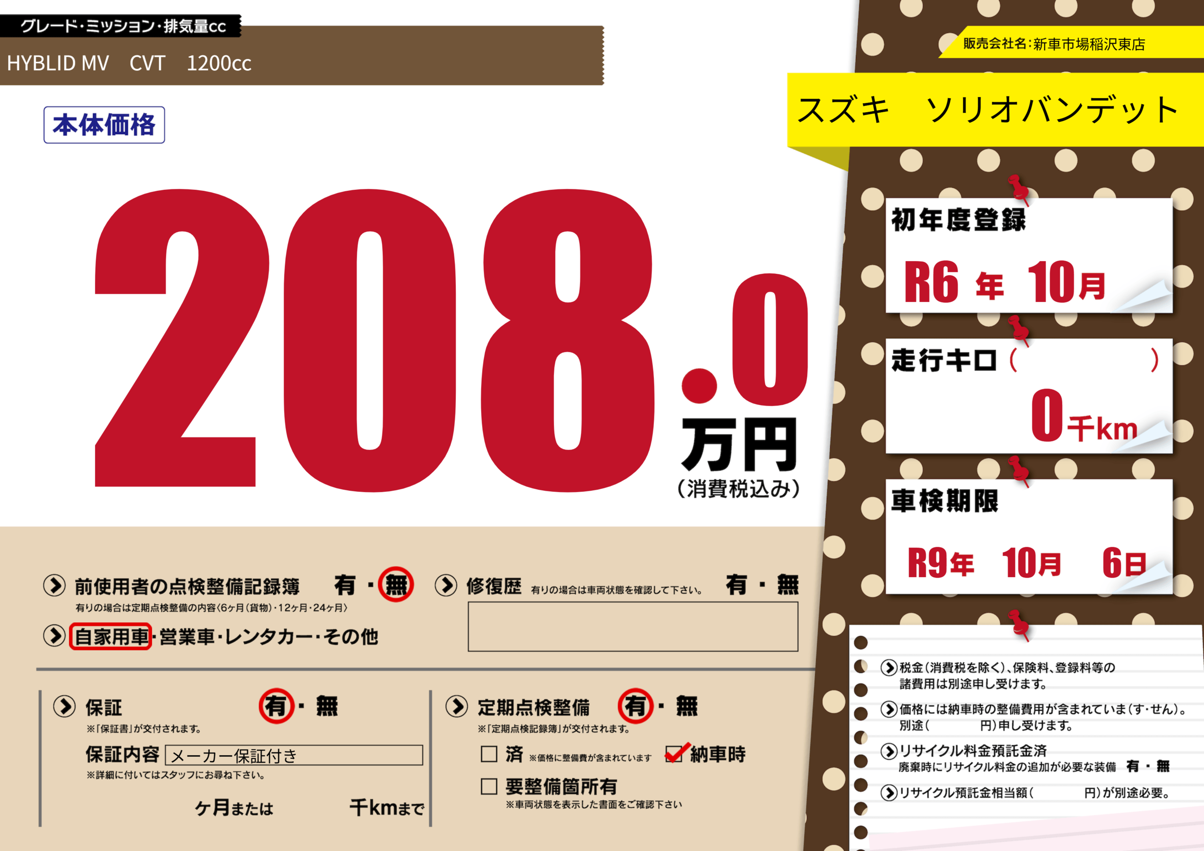 なし | 車検制限 | R9年10月6月 |
