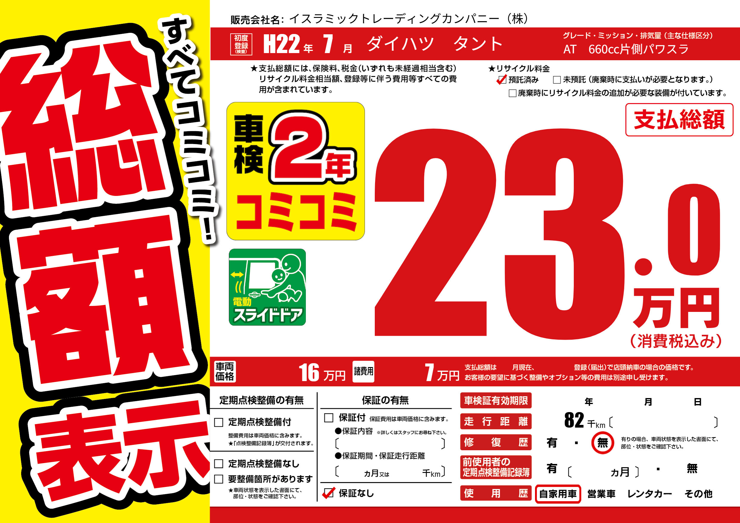 | 走行キロ | 8.2万km | 初年度登録 | H22年7月 |