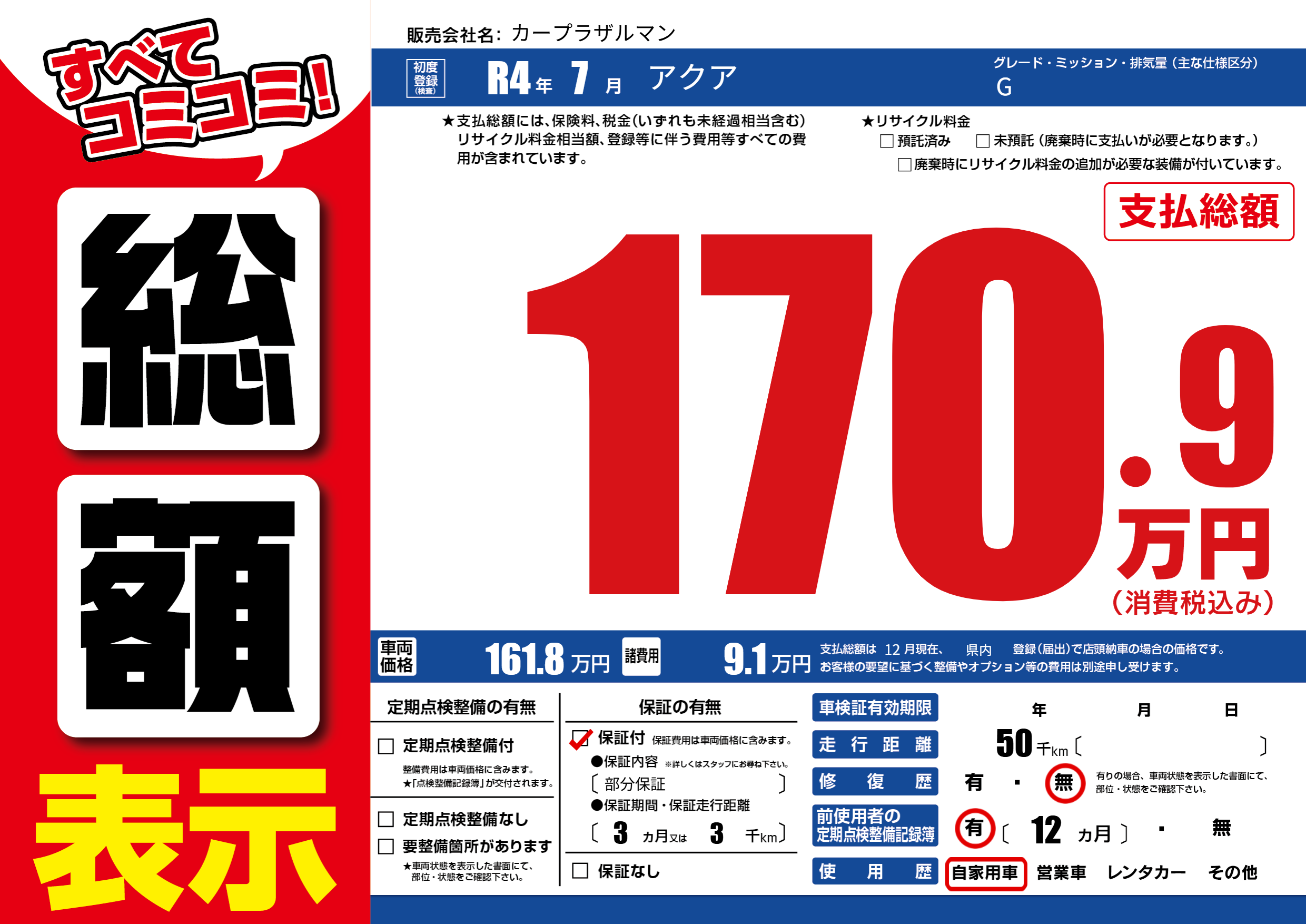 保証付き 保証内容(部分保証) 3ヶ月または(3)千kmまで |