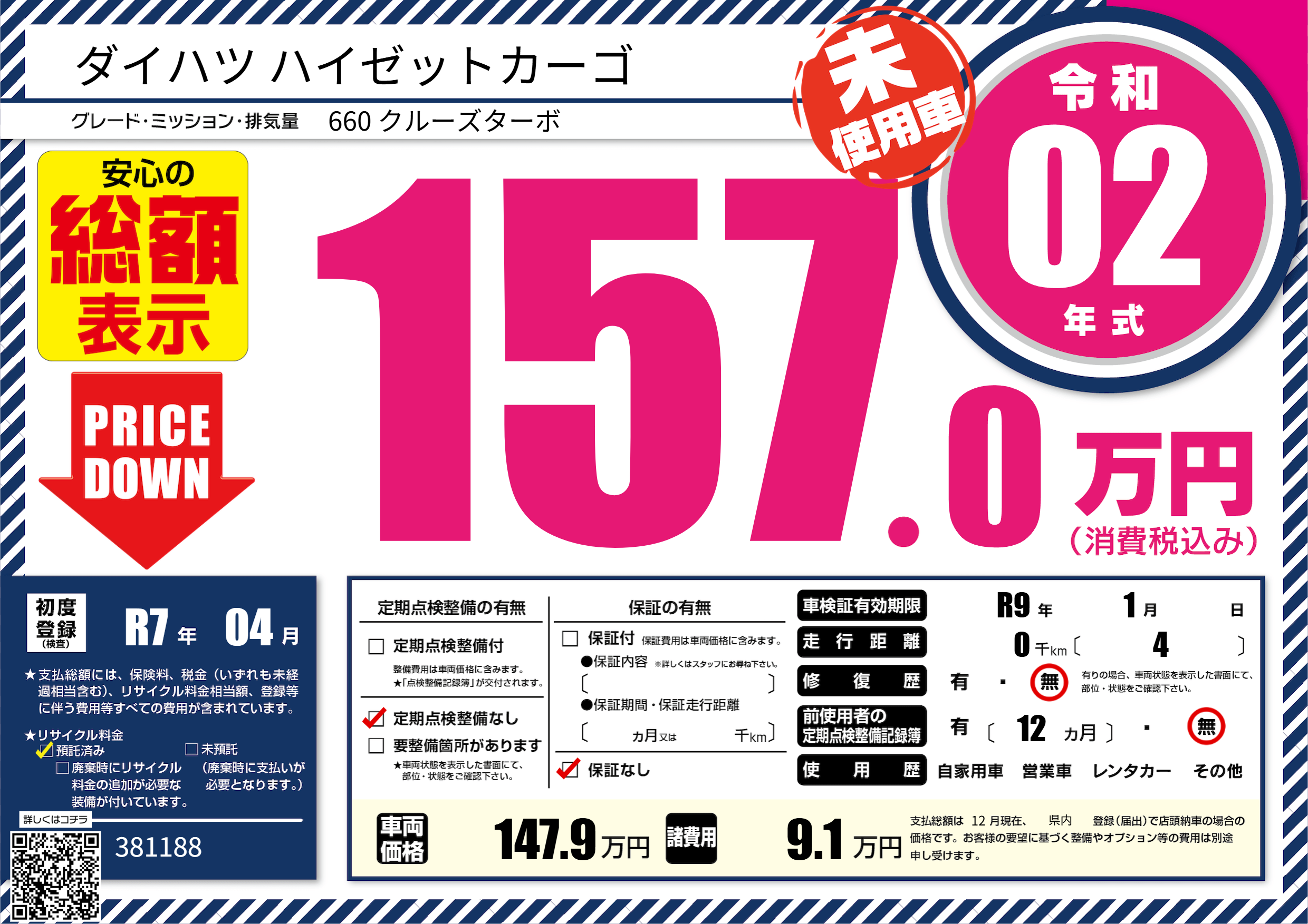 | 走行キロ | - | 初年度登録 | R7年04月 |
