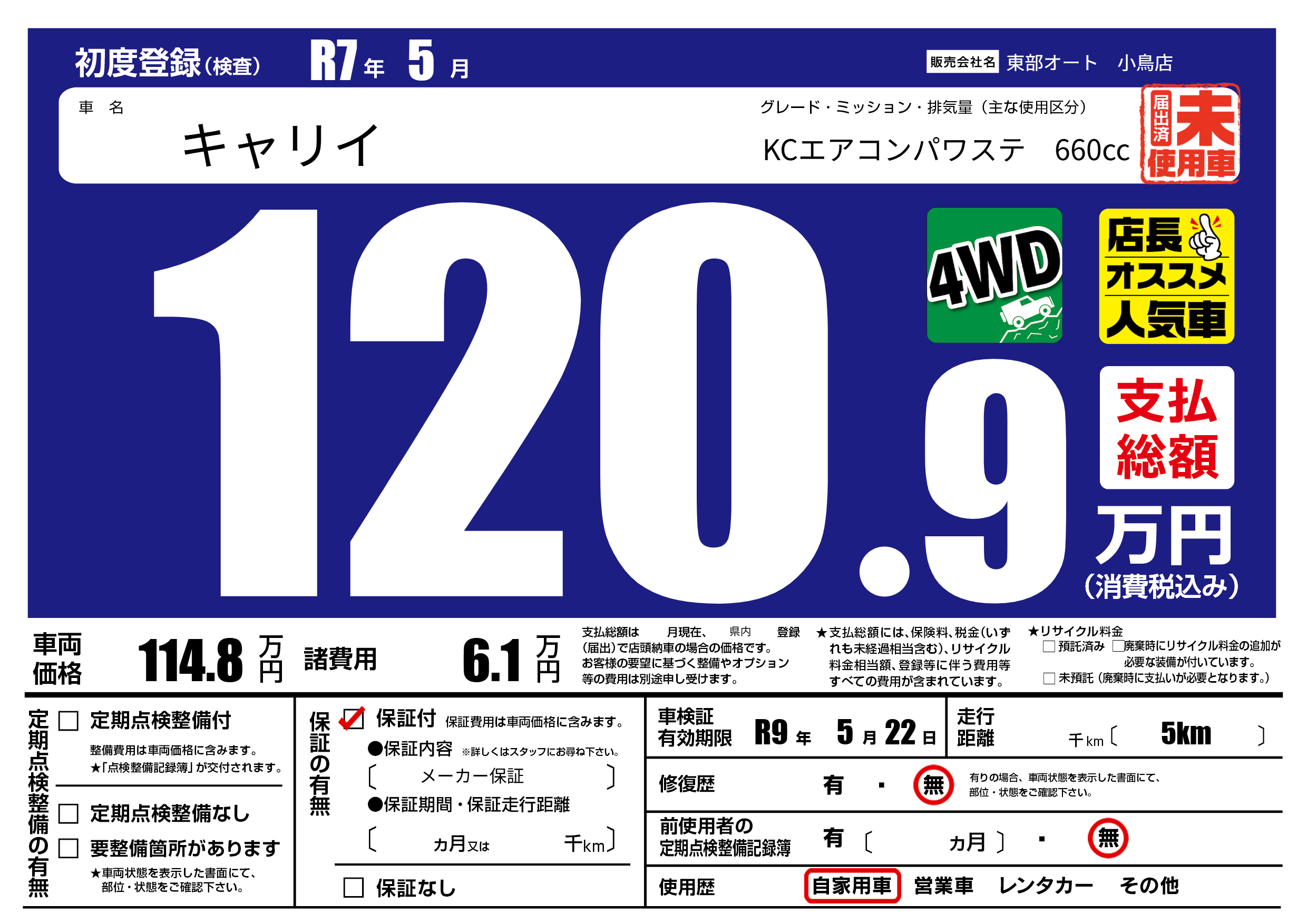 なし | 車検制限 | R9年5月22月 |