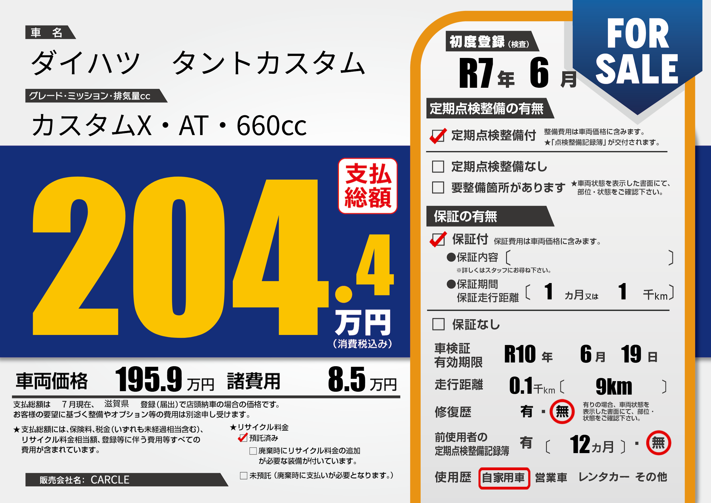 | 走行キロ | - | 初年度登録 | R7年6月 |