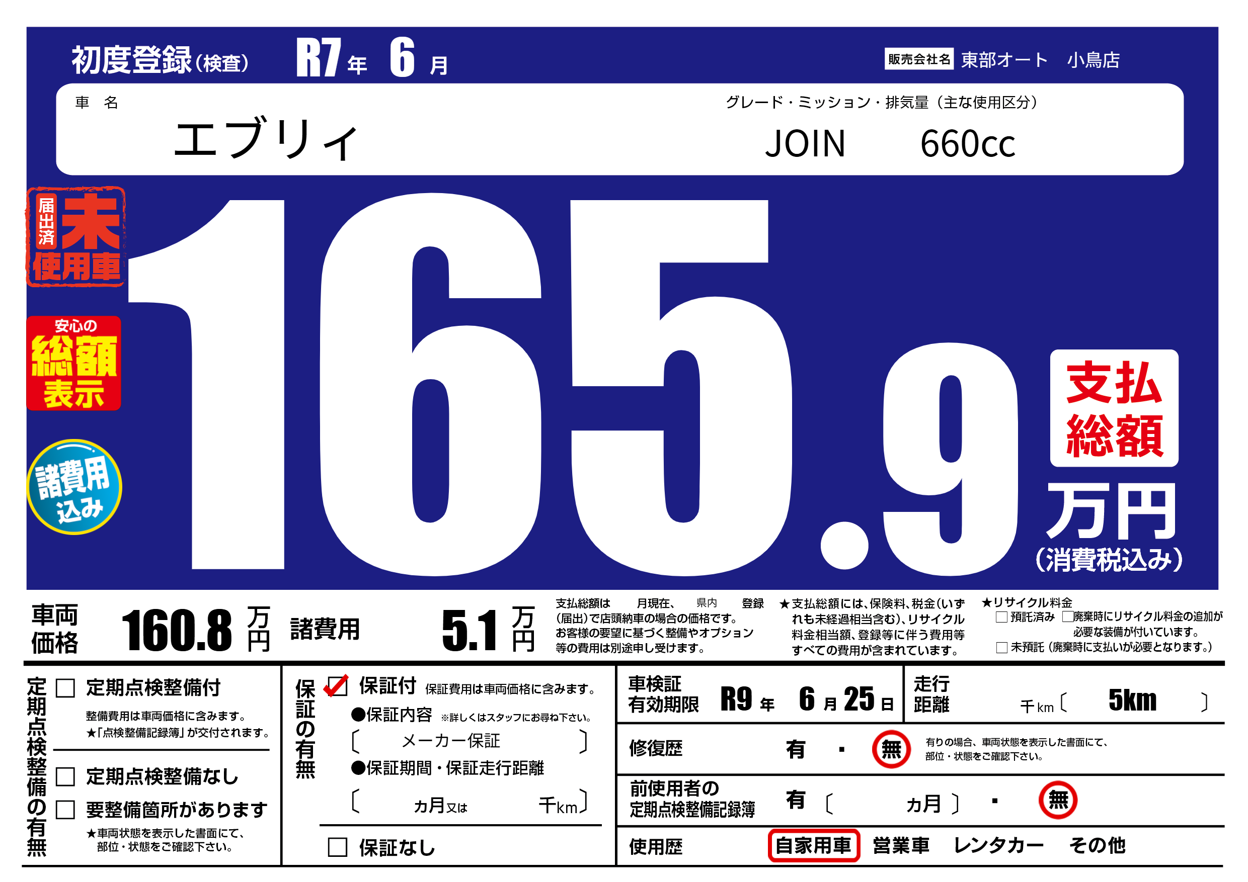 なし | 車検制限 | R9年6月25月 |