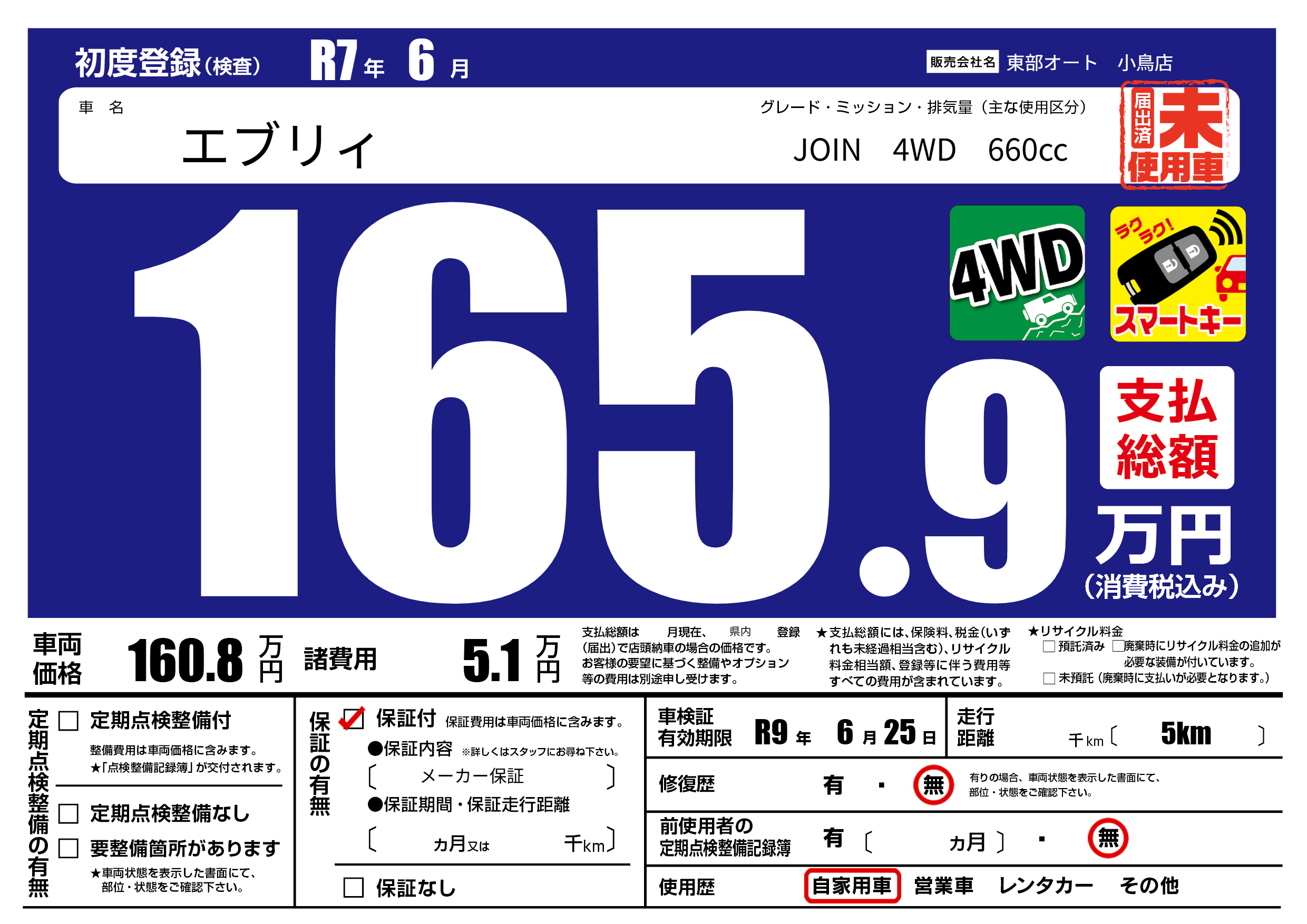 なし | 車検制限 | R9年6月25月 |