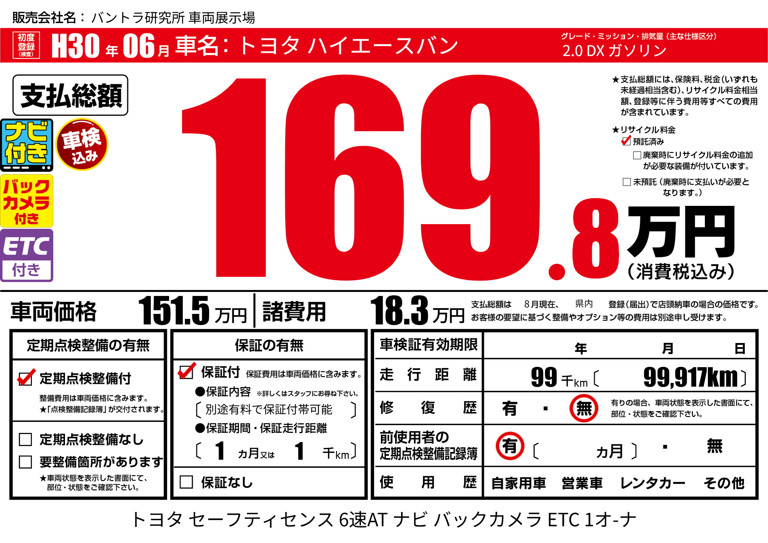 | 走行キロ | 9.9万km | 初年度登録 | H30年06月 |