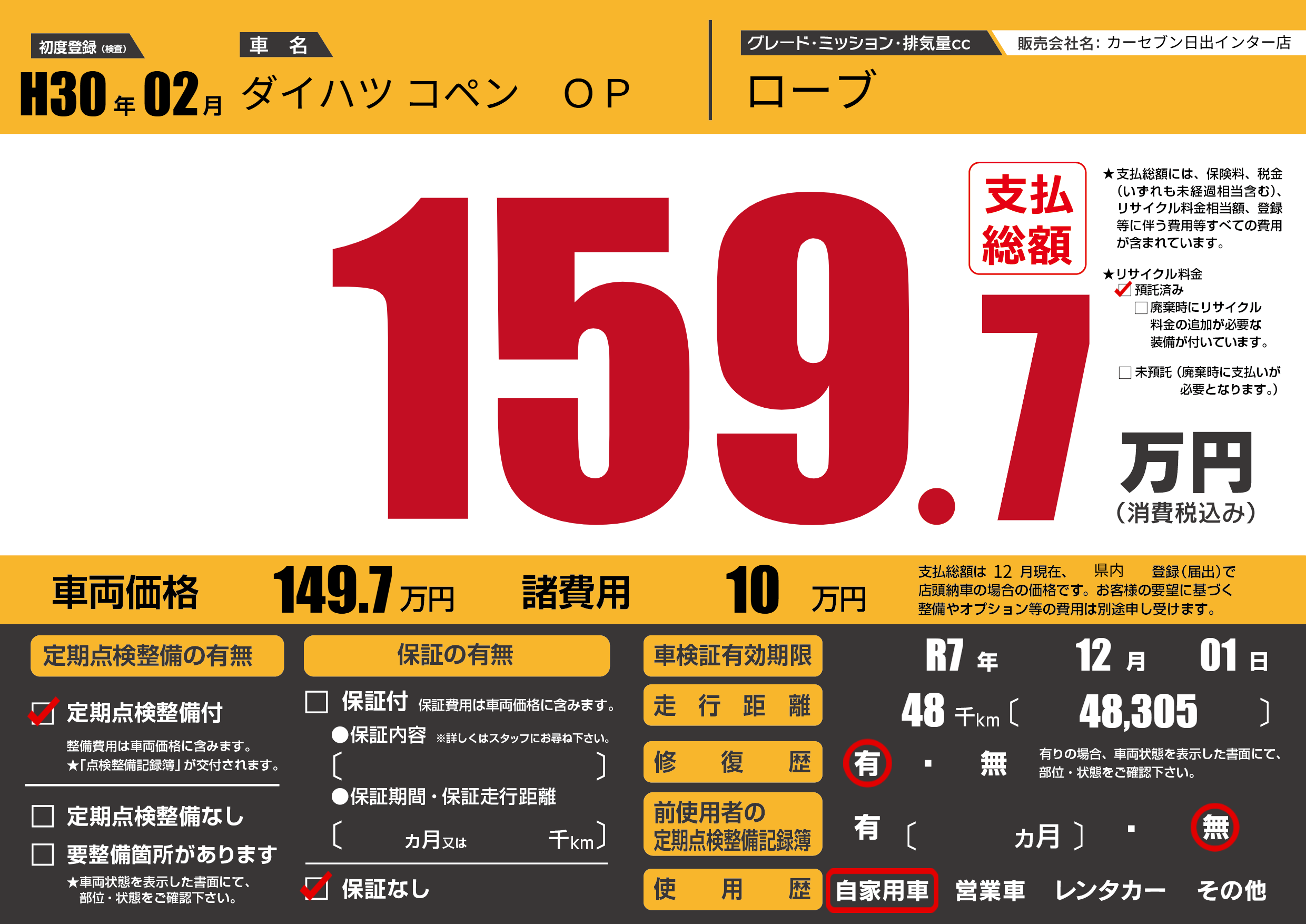 | 車名 | ダイハツ コペン OP | グレード ミッション 排気量 |