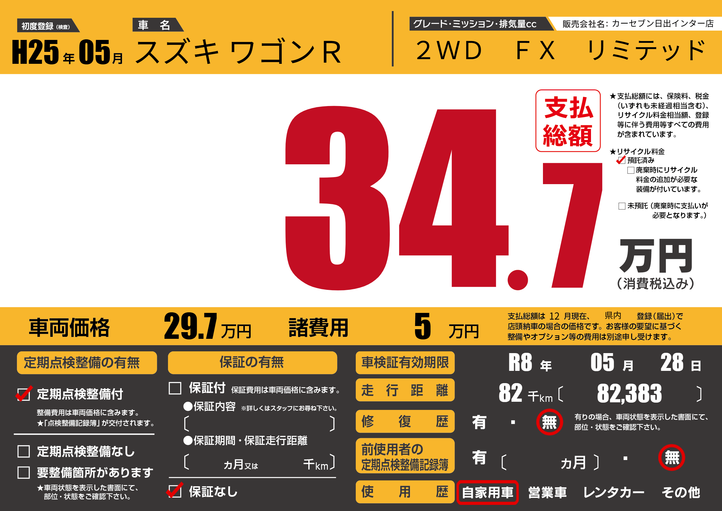| 車検制限 | R8年 05月 28日 | ||