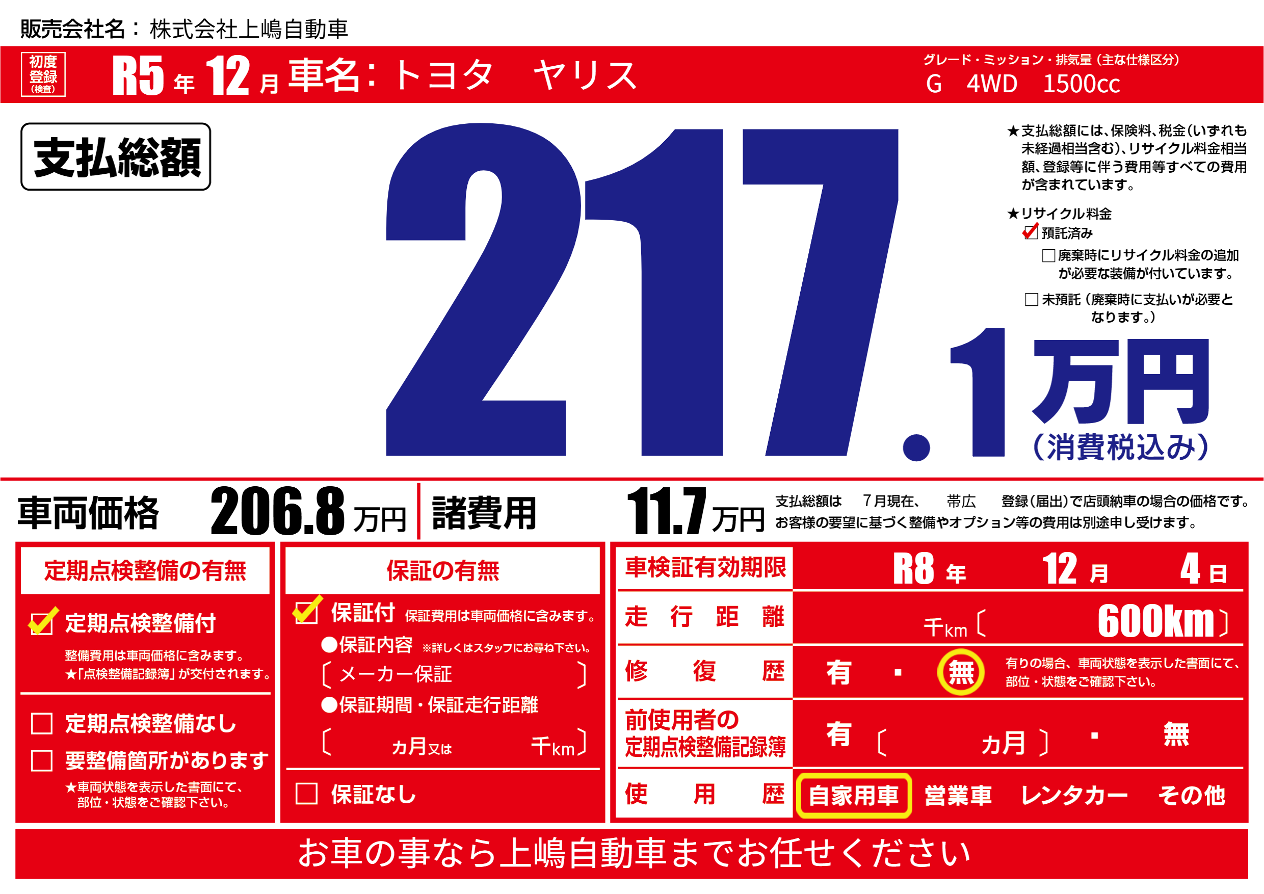 | 走行キロ | - | 初年度登録 | R5年12月 |