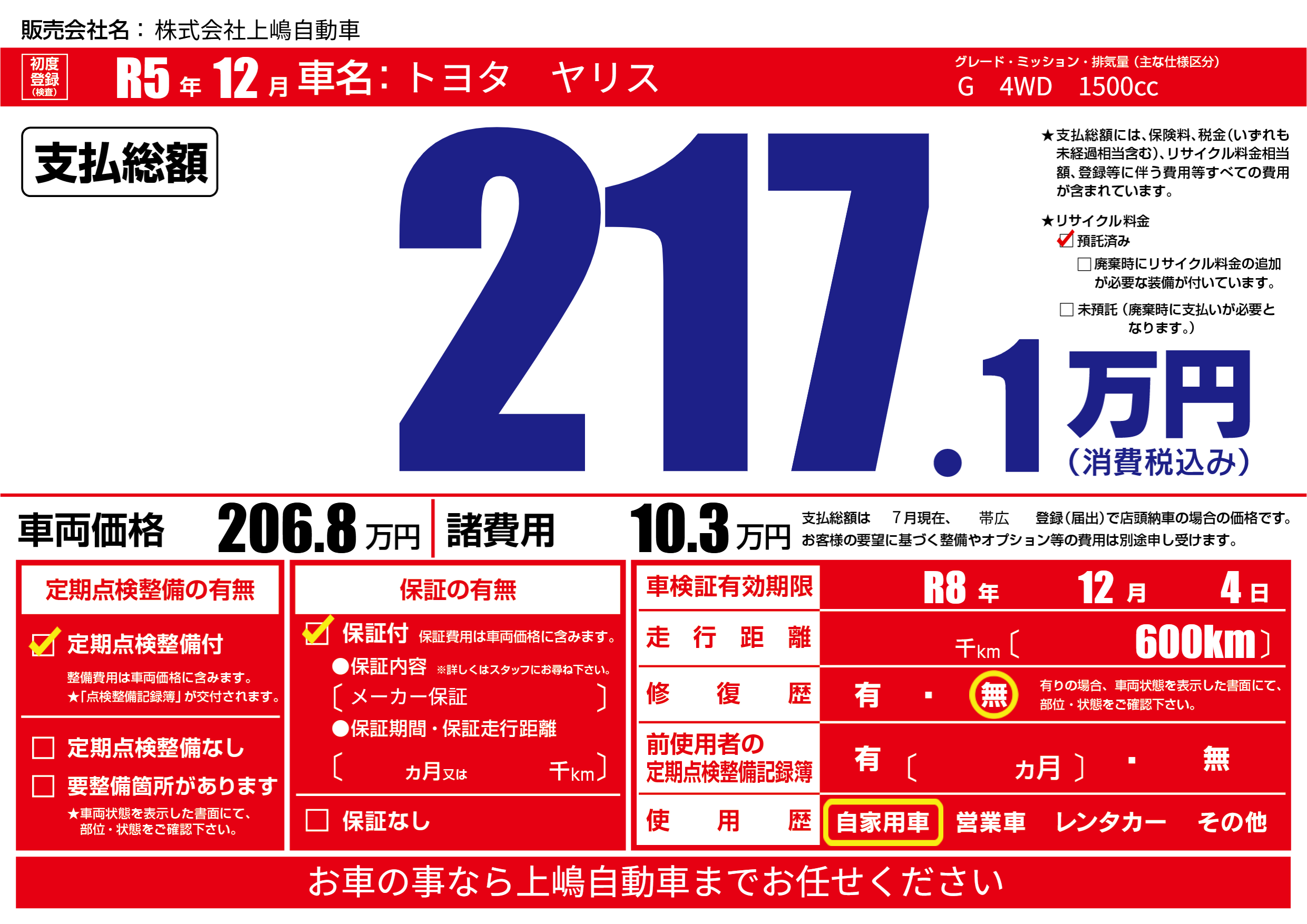 | 走行キロ | - | 初年度登録 | R5年12月 |