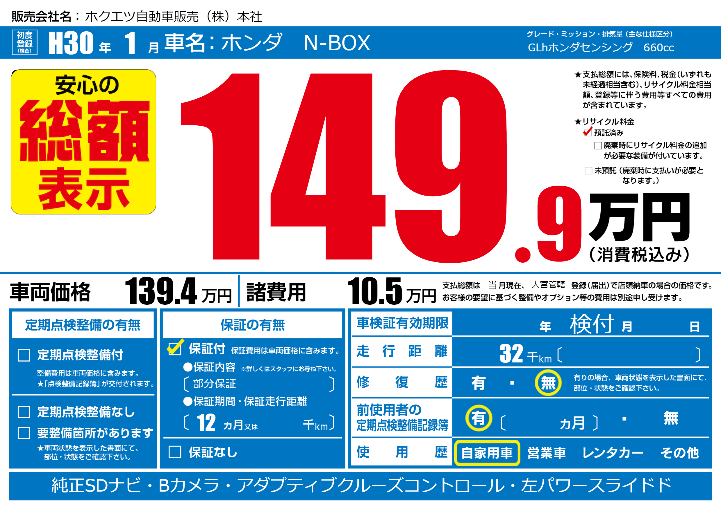 | 走行キロ | 3.2万km | 初年度登録 | H30年1月 |