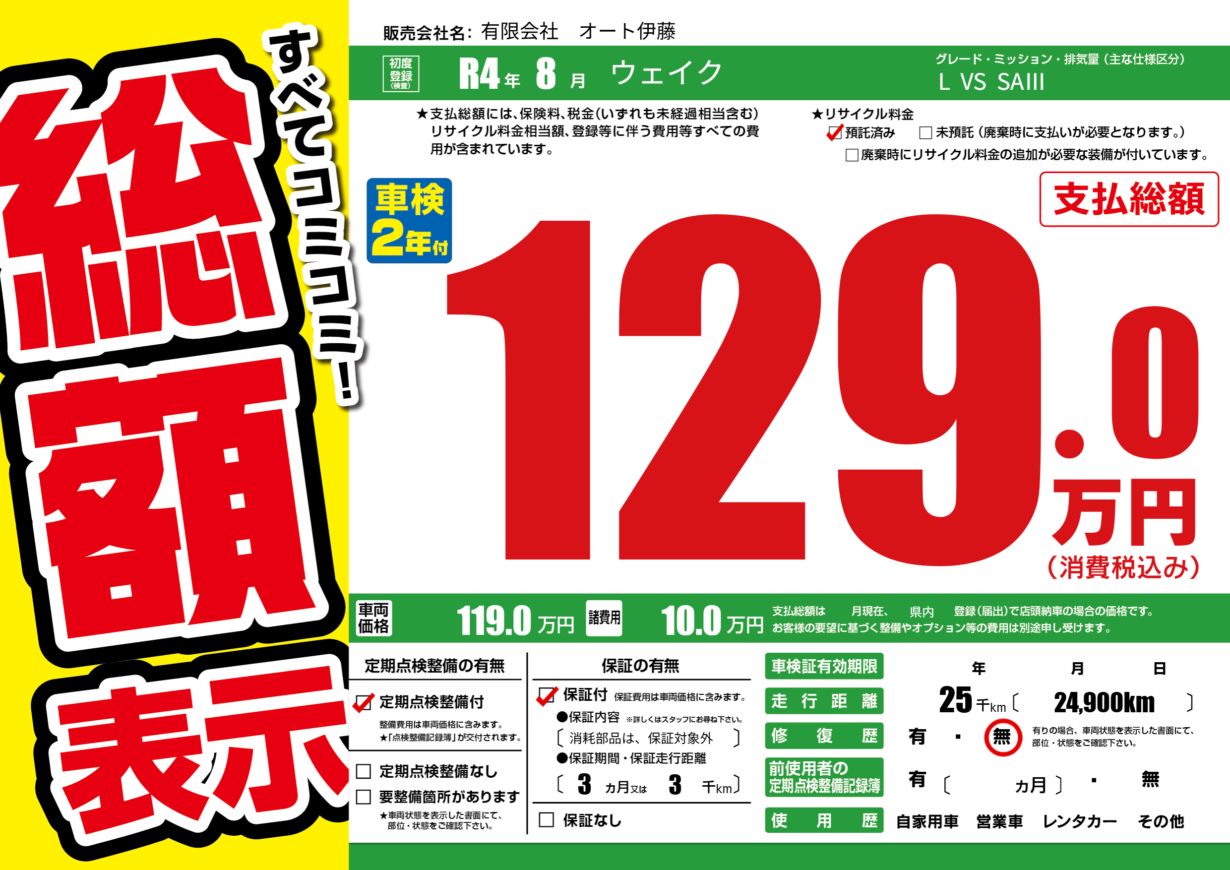 | 走行キロ | 2.5万km | 初年度登録 | R4年8月 |