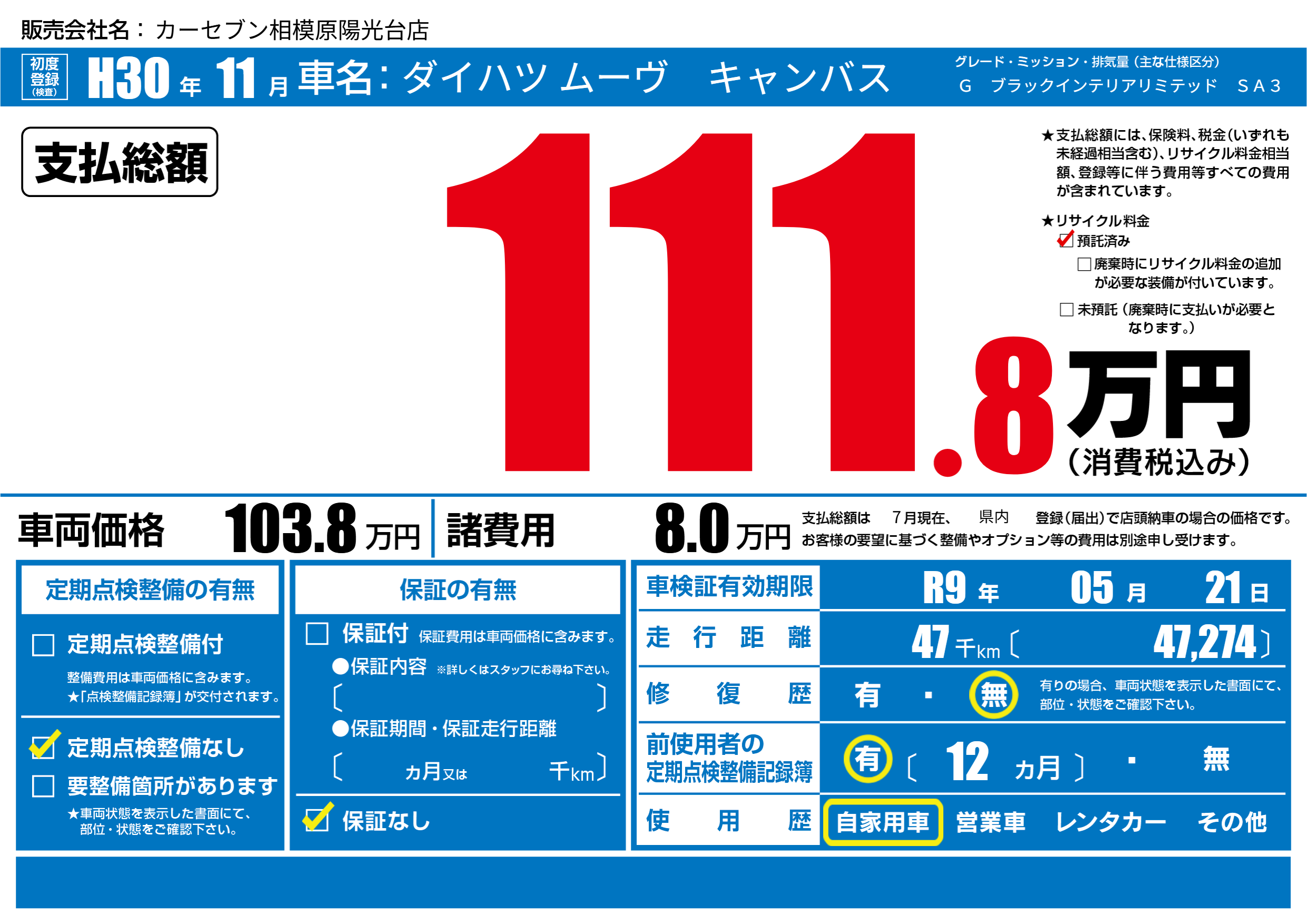 | 定期点検整備 | 定期点検整備なし | ||