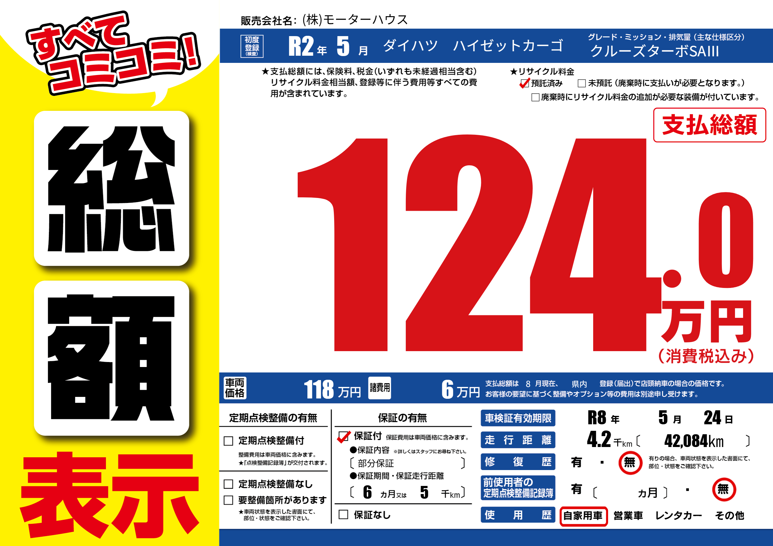 保証なし 保証内容(部分保証) 6ヶ月または(5)千kmまで |