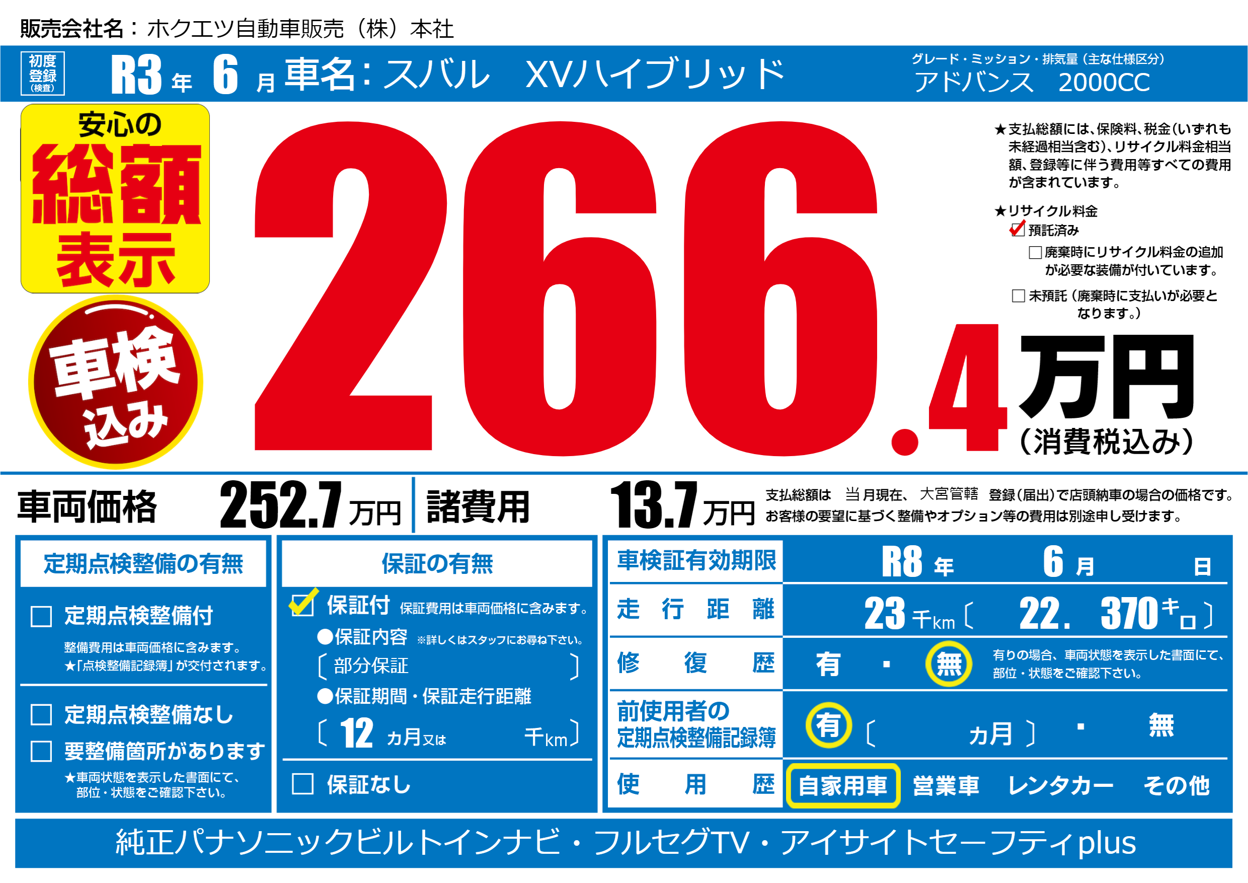 | 車検制限 | R8年 6月 - 日 | ||