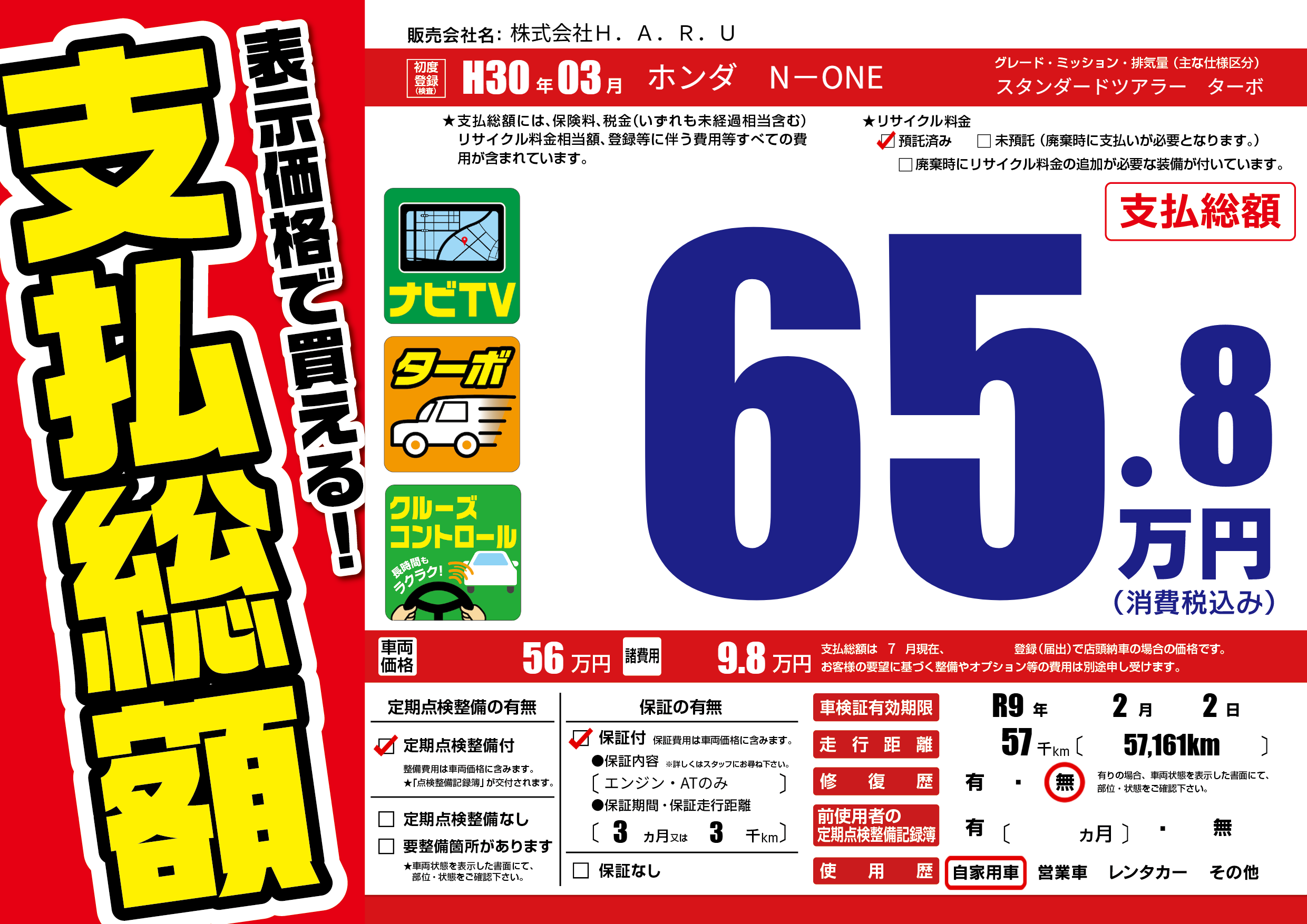 | 走行キロ | 5.7万km | 初年度登録 | H30年03月 |