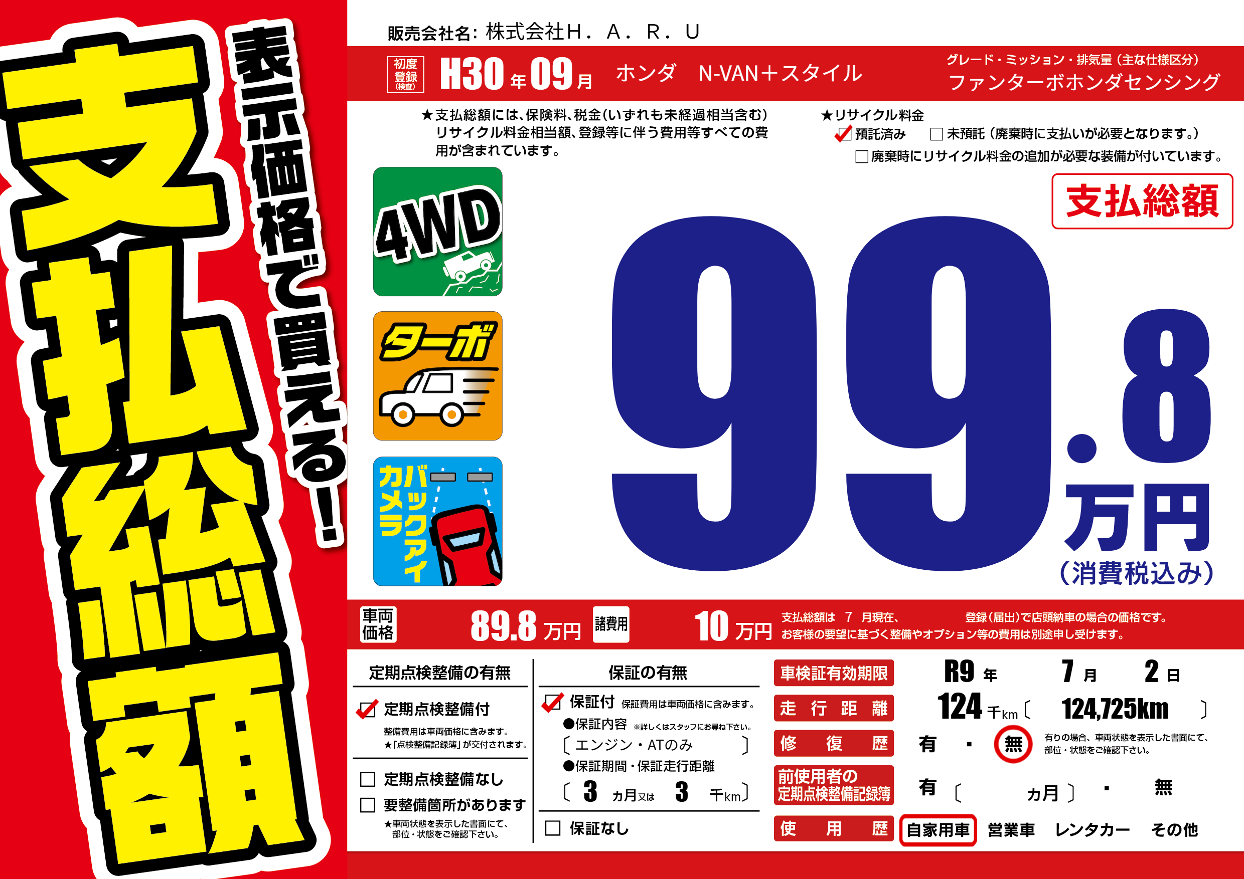 なし | 車検制限 | R9年7月2月 |