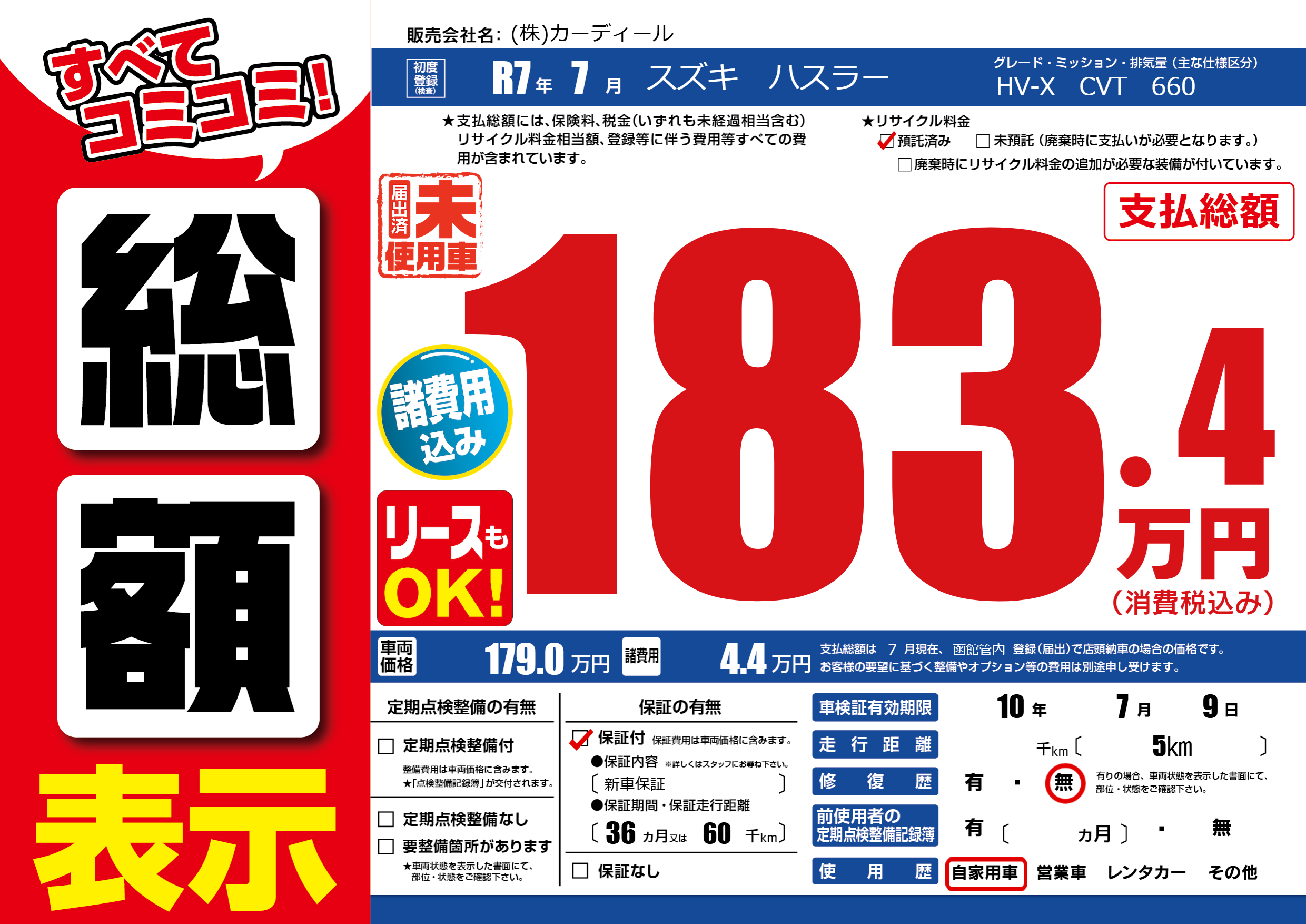 | 走行キロ | - | 初年度登録 | R7年7月 |