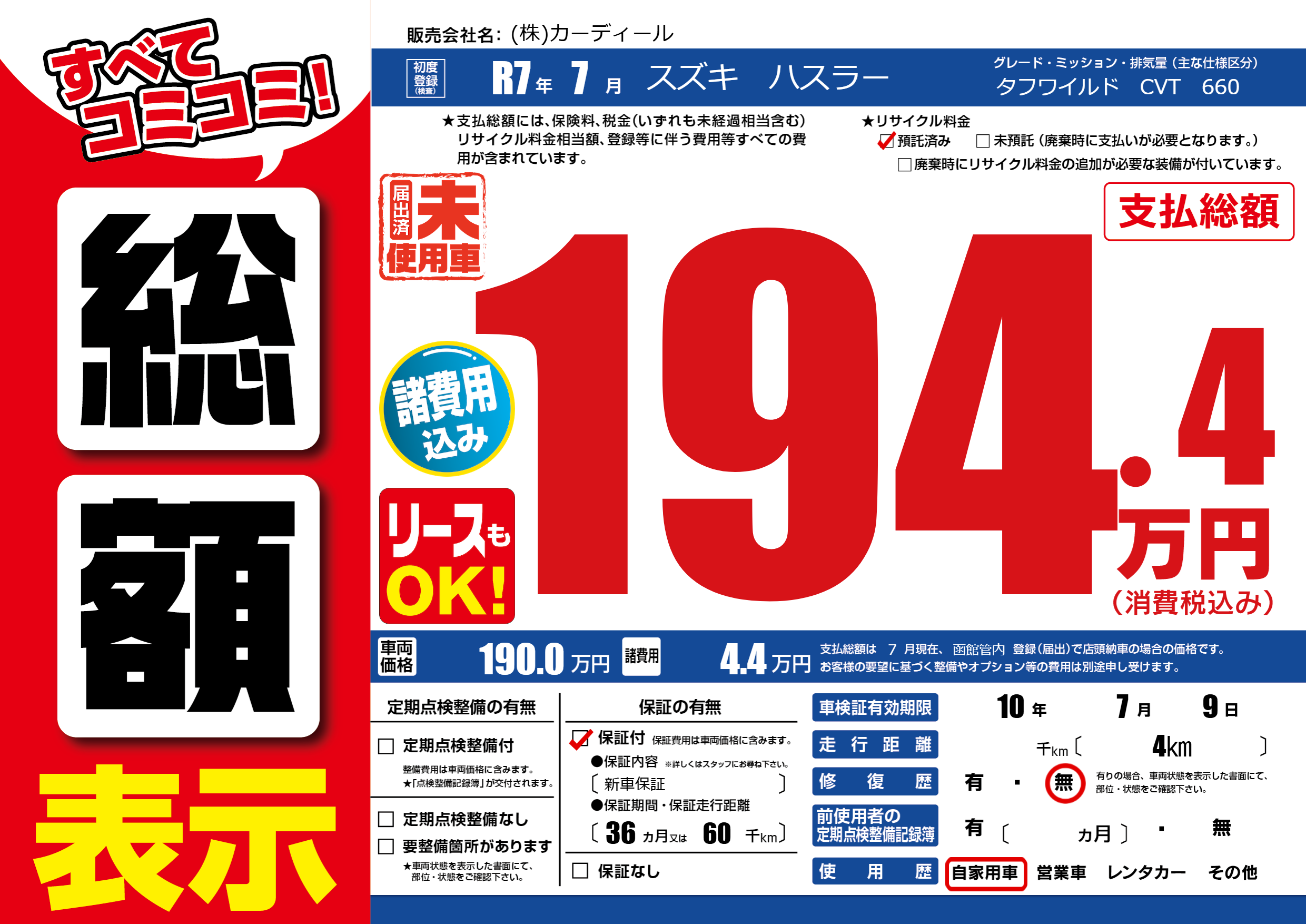 | 走行キロ | - | 初年度登録 | R7年7月 |