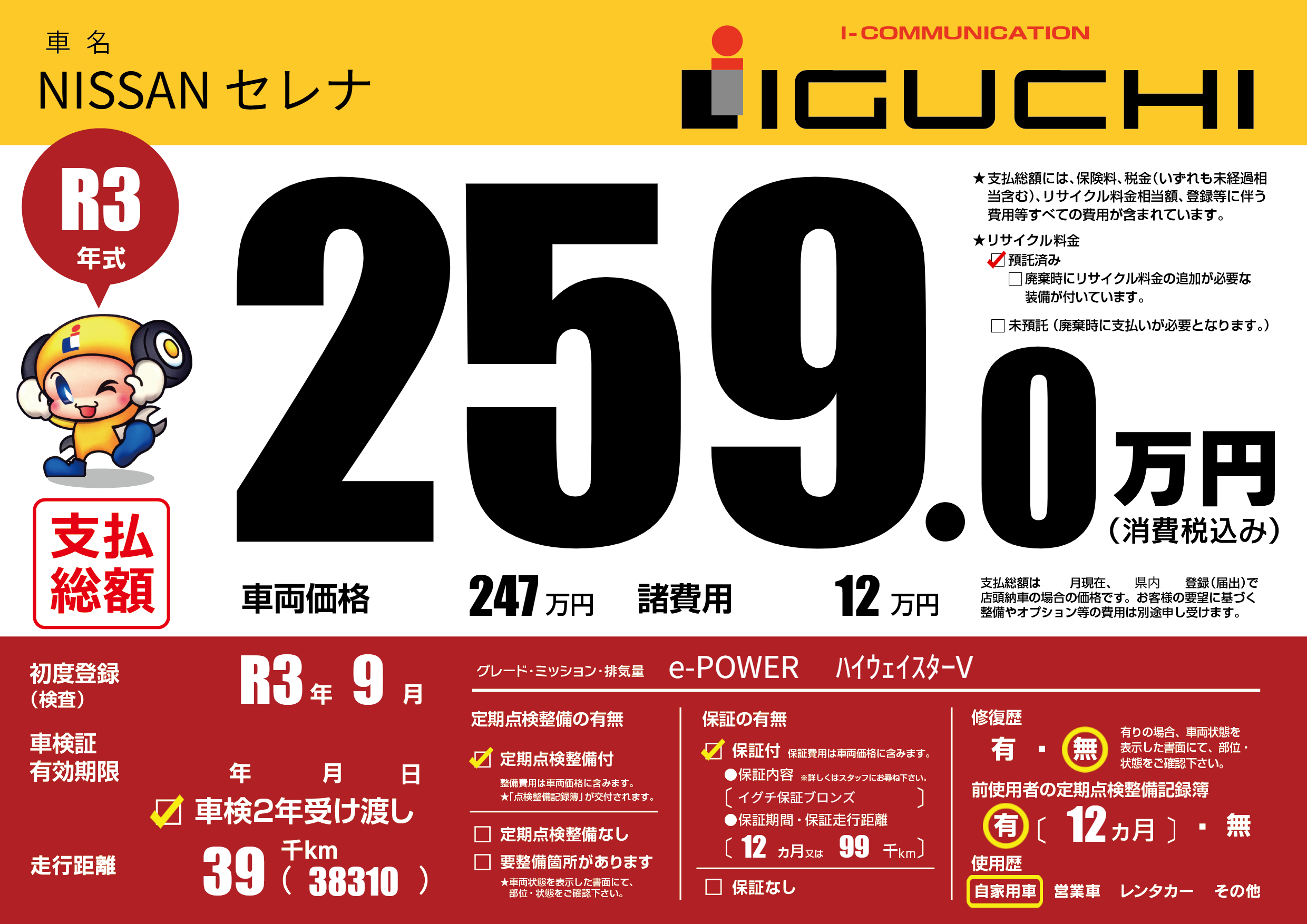 保証付き 保証内容(イグチ保証ブロンズ) 12ヶ月または(99)千kmまで |