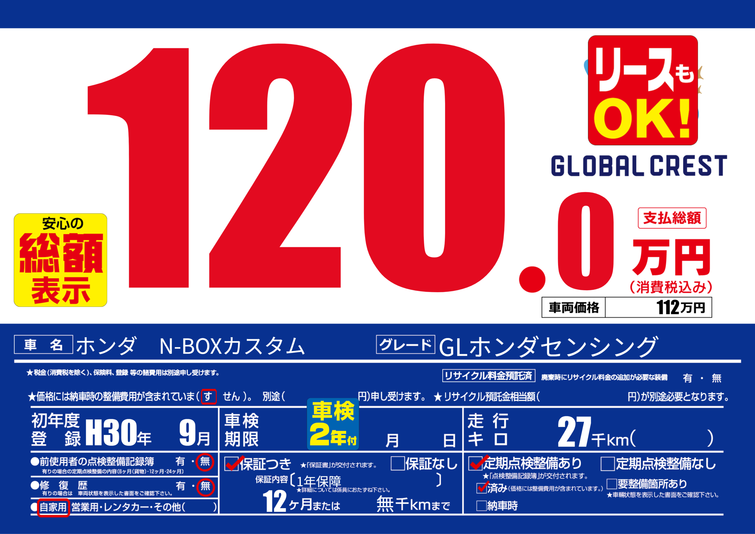 | 定期点検整備 | 定期点検整備あり 定期点検整備済み | ||