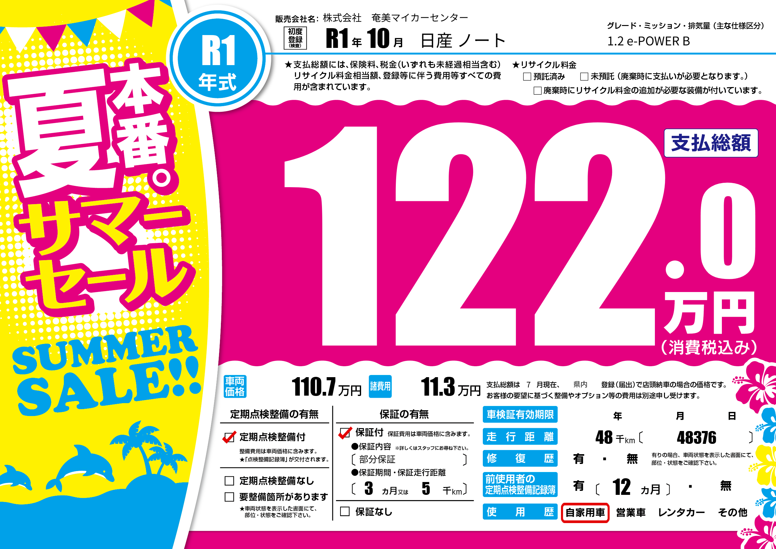| 走行キロ | 4.8万km | ||