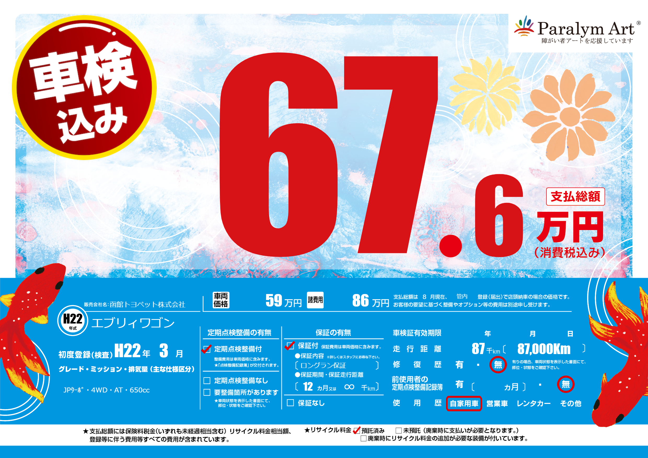 | 走行キロ | 8.7万km | 初年度登録 | H22年3月 |