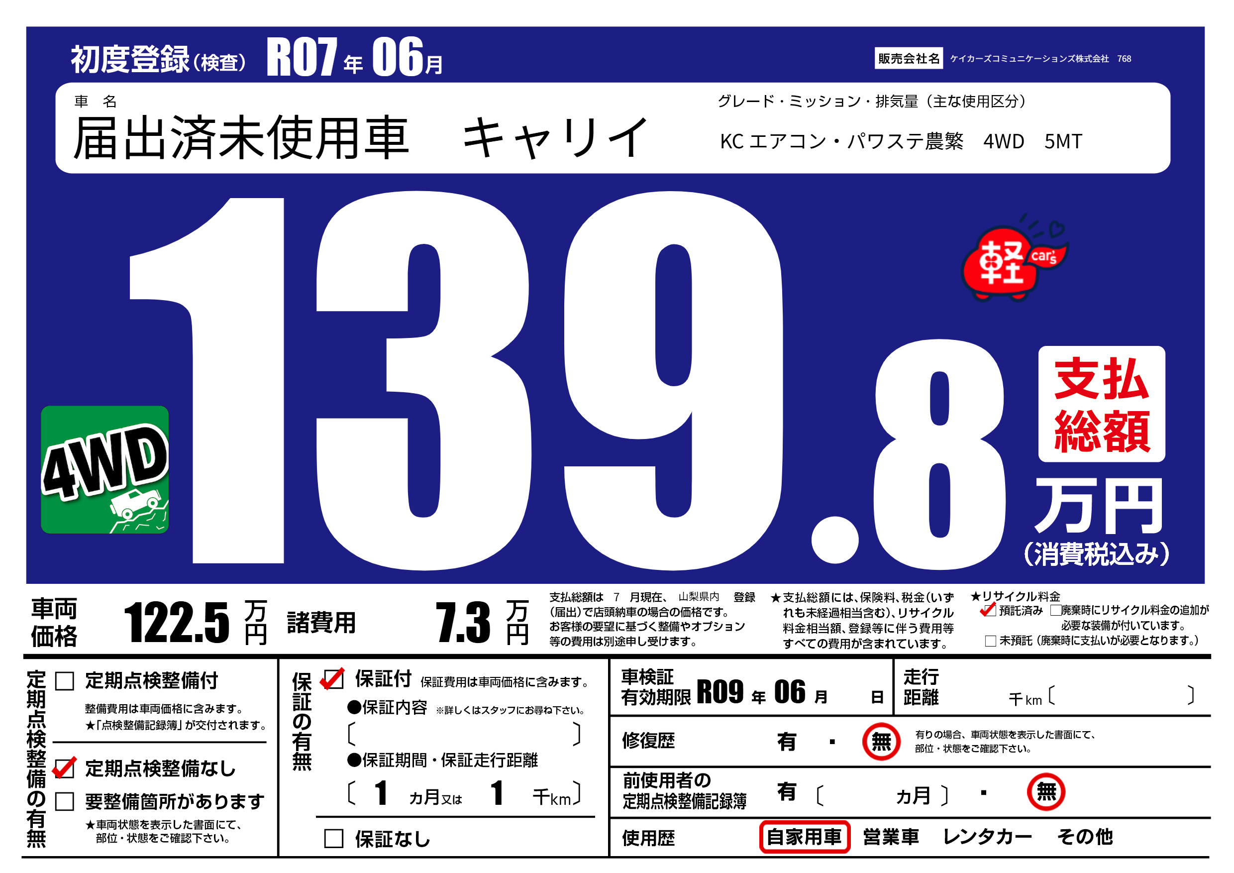 なし | 車検制限 | R09年06月---月 |