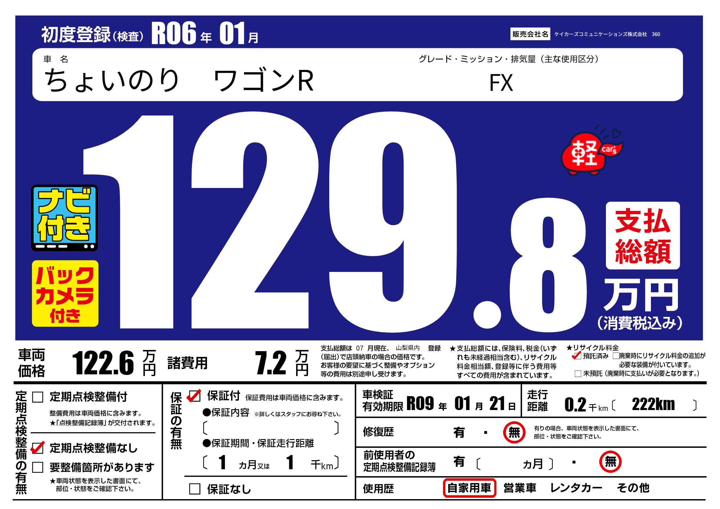 | 走行キロ | - | 初年度登録 | R06年01月 |
